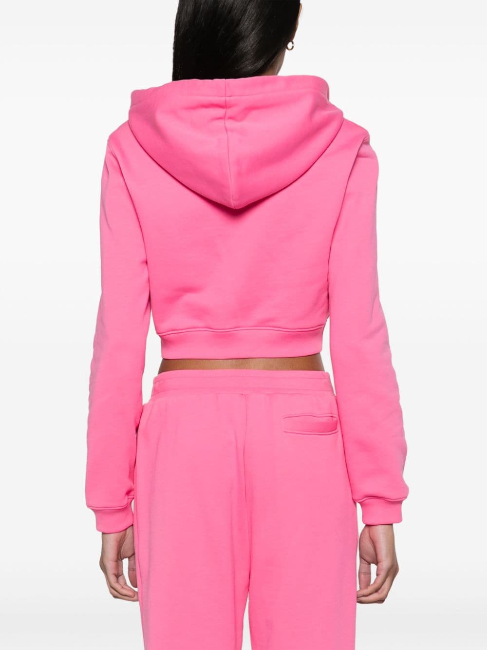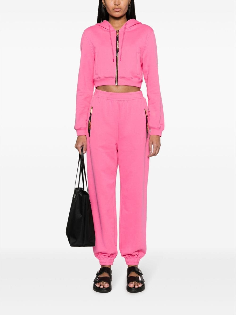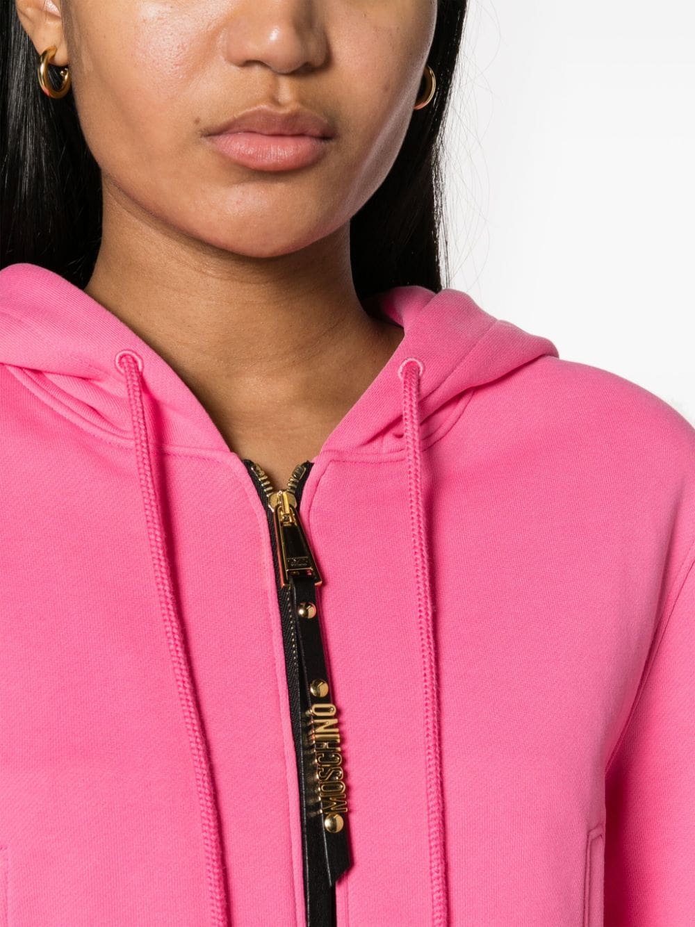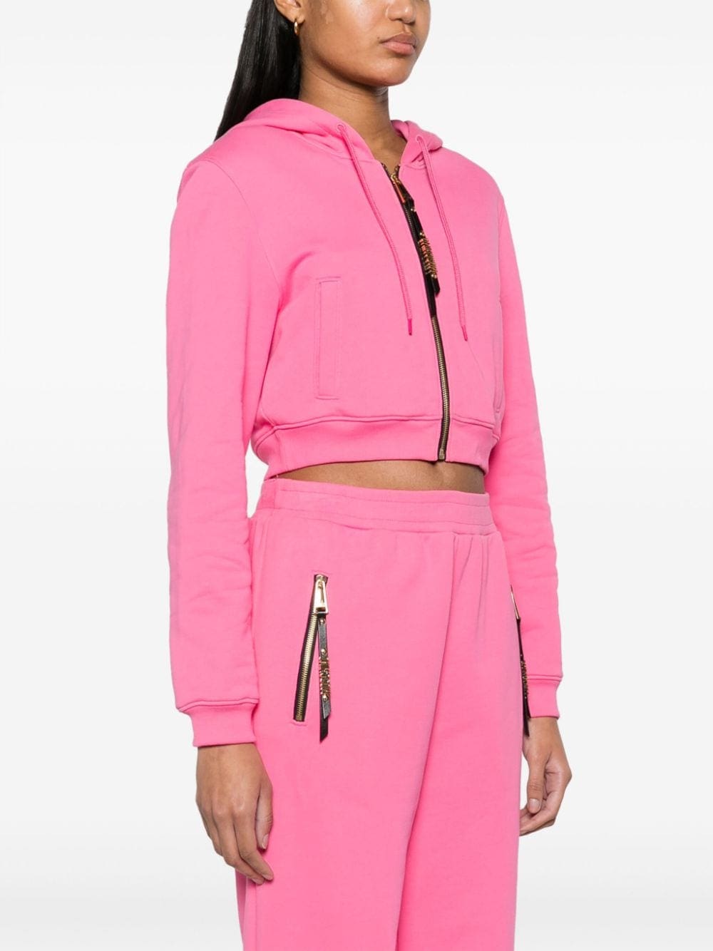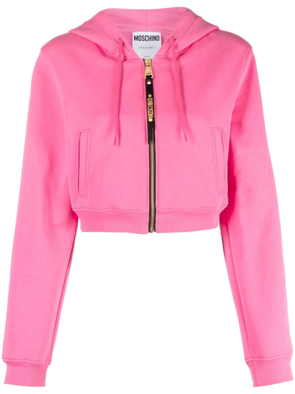 Striking colours and modern silhouettes are at the core of Moschino's DNA. This zip-up hoodie embodies just that: it is fashioned in a vibrant fuchsia pink colour and a bold cropped design.