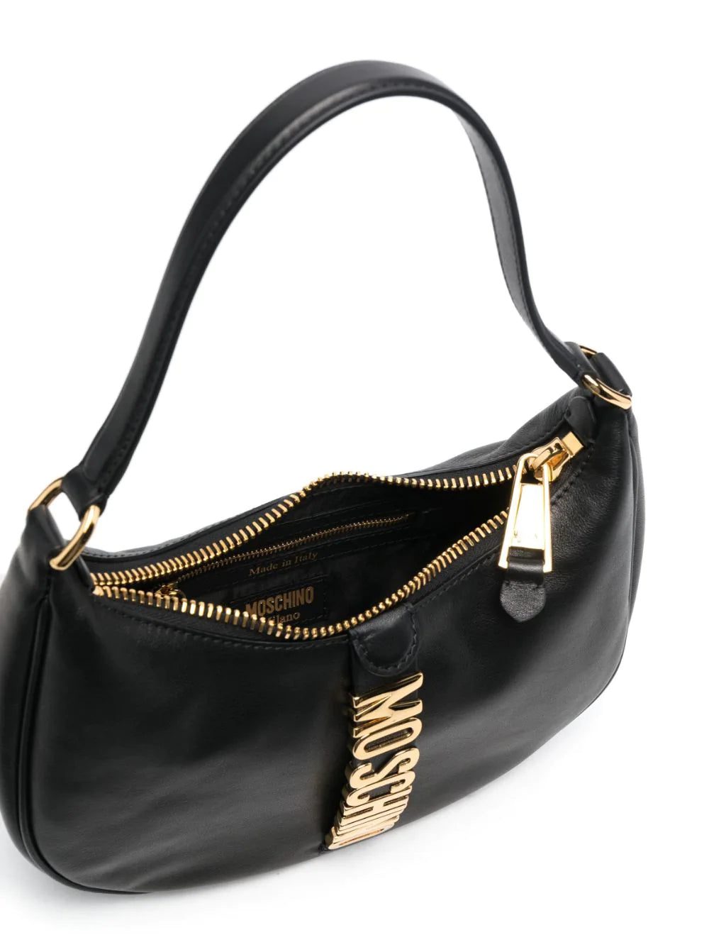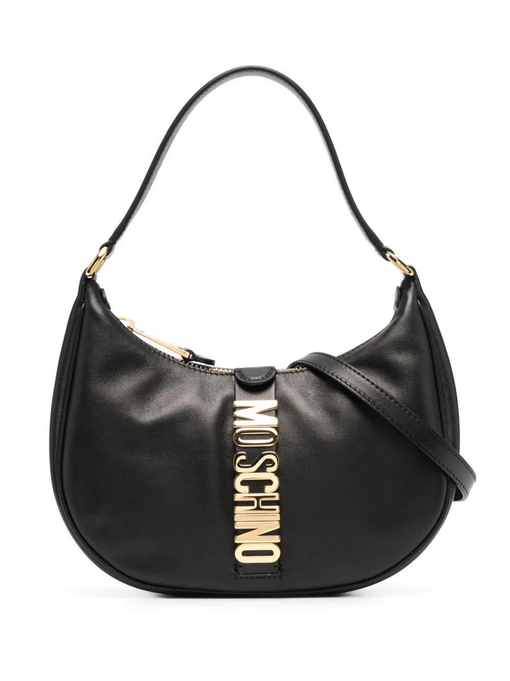Moschino masters the art of adding bold signature details to classic silhouettes. Presented in a black colourway, this shoulder bag is embellished with a gold-tone logo plaque to the front for a recognisable look.