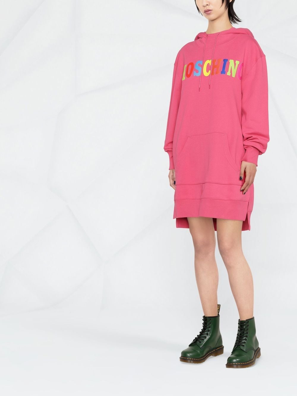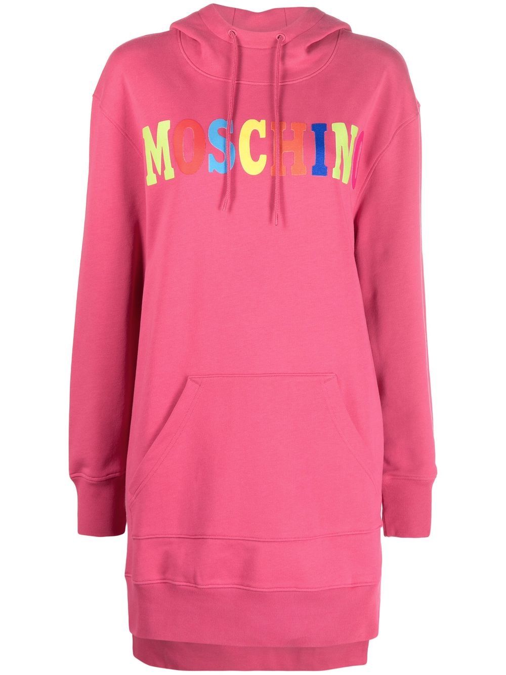Nodding to its playful aesthetic, this cotton dress by Moschino is decorated with the brand's printed logo in a multicoloured iteration. Combined with a hooded design, this detail enhances the laid-back look.