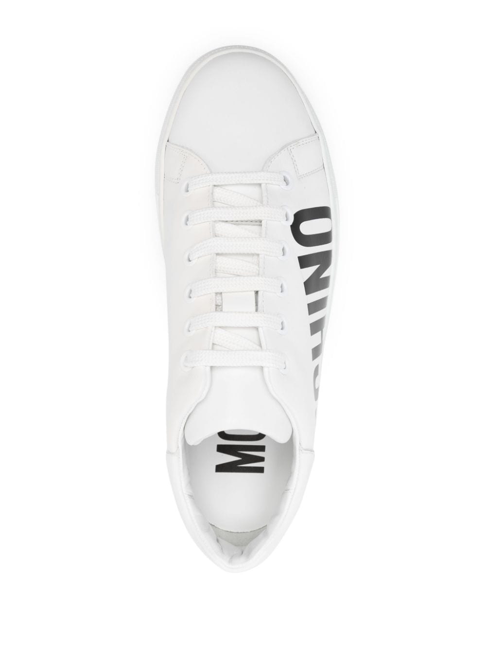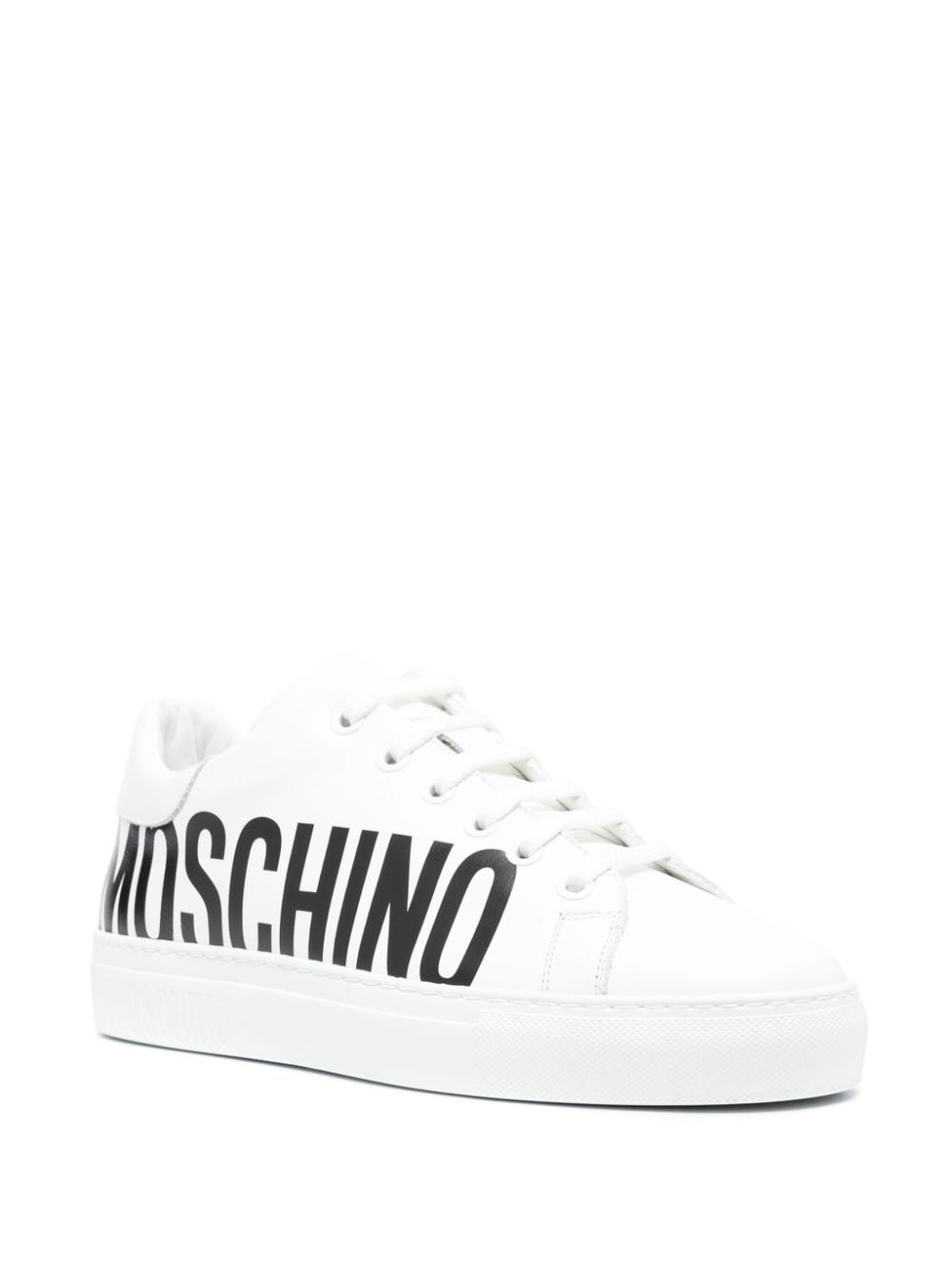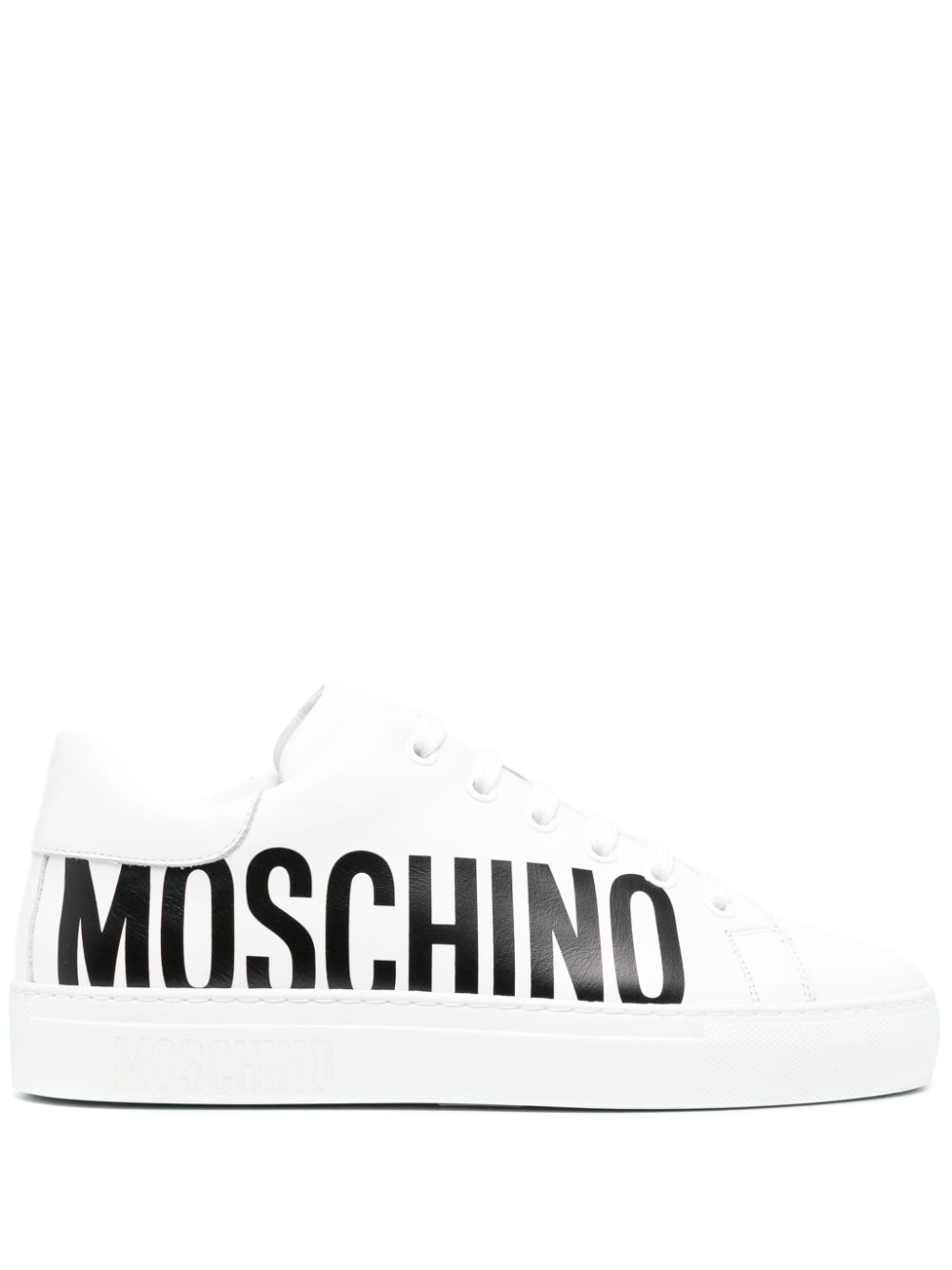 Bold branding is Moschino's forte and these white leather sneakers are a fine example. A contrasting logo print at the sidewall elevates the sleek, minimalist silhouette.
