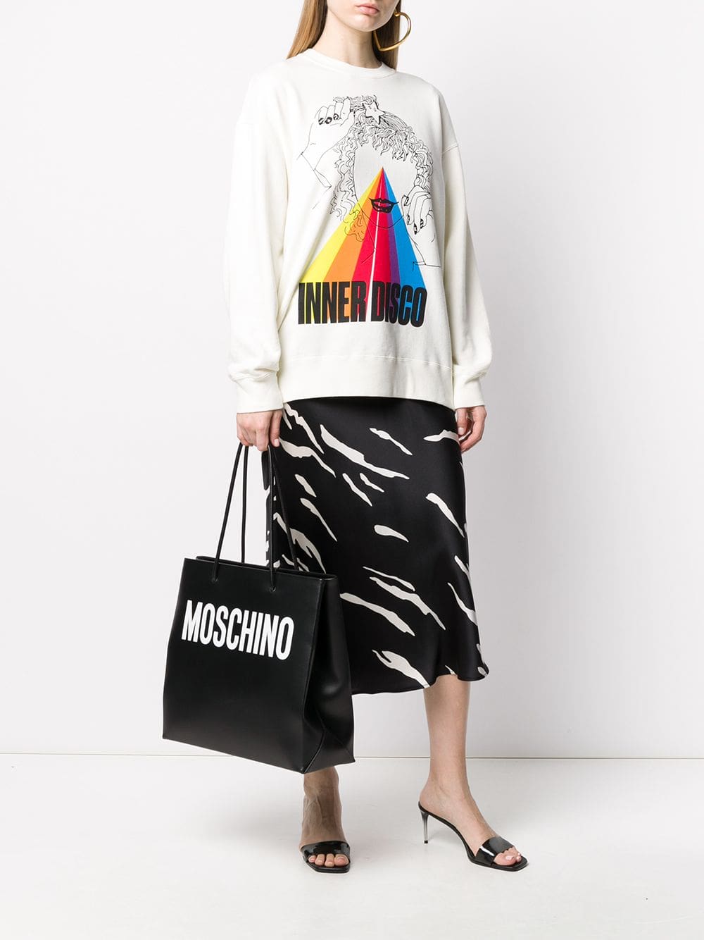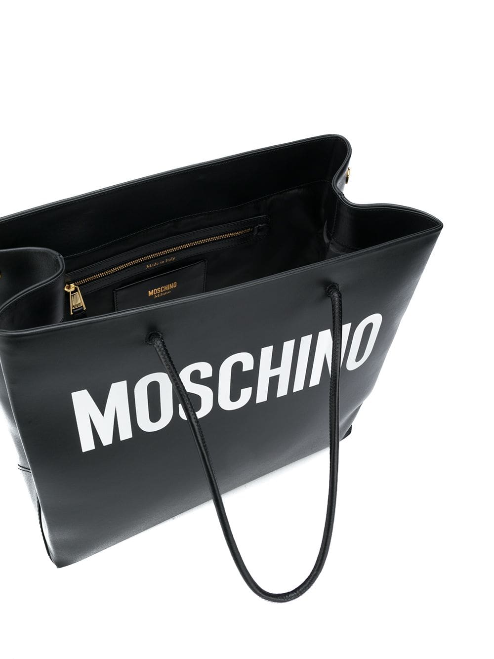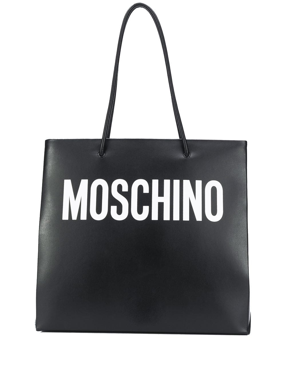 You will tote-ally love this. Crafted from black leather, this logo print tote from Moschino is sure to keep all your important treasures close at hand. Accessory game changer. Featuring round top handles, a printed logo, a main internal compartment and an internal zipped pocket.
