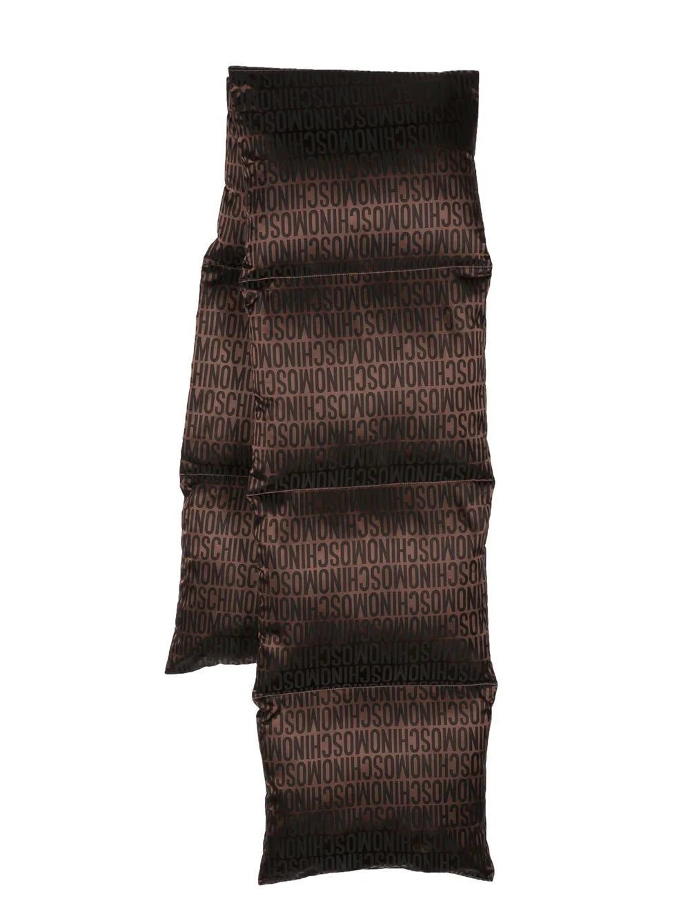 monogram-jacquard quilted scarf from MOSCHINO featuring chocolate brown, padded design, monogram jacquard and tonal stitching.