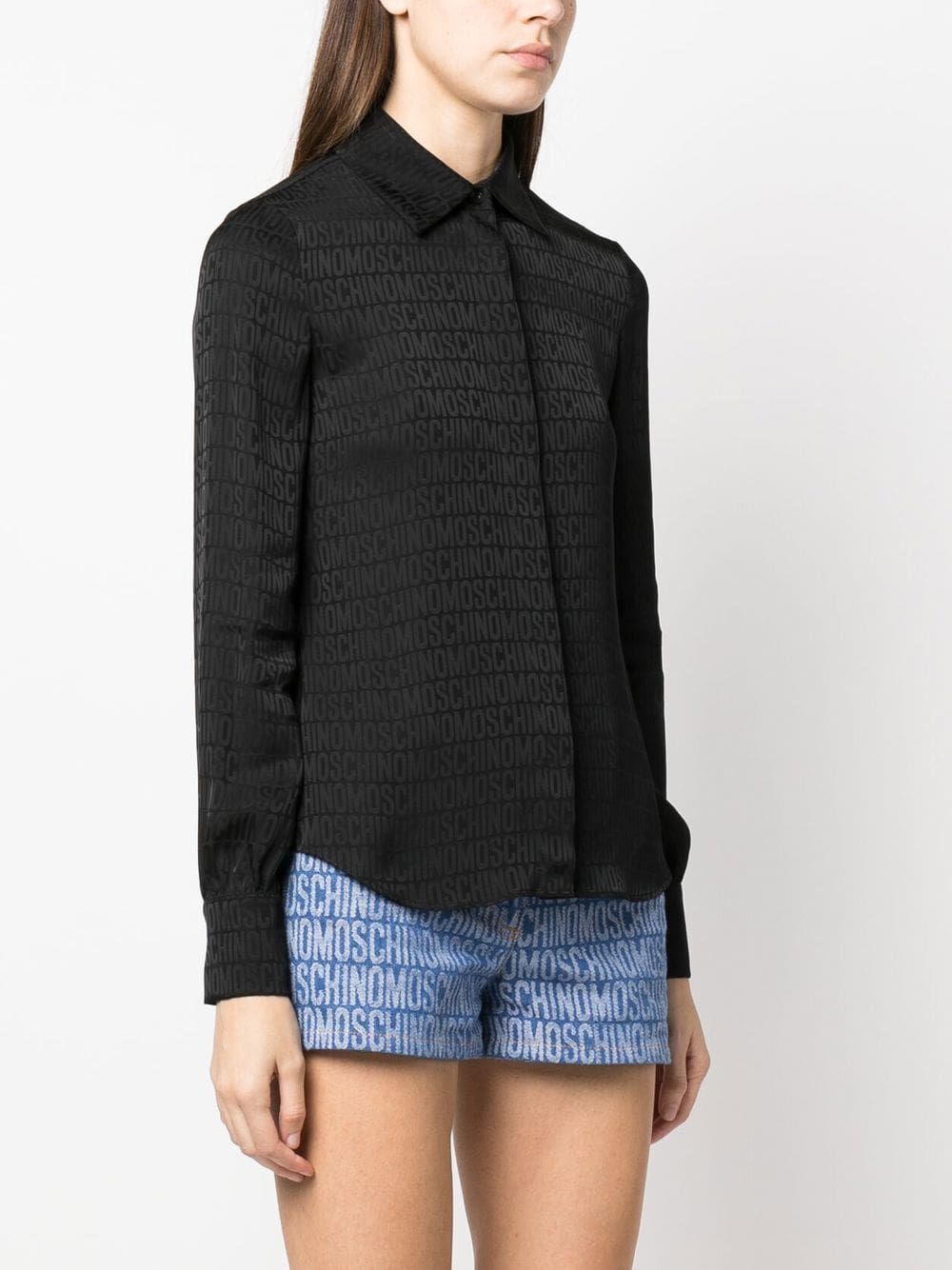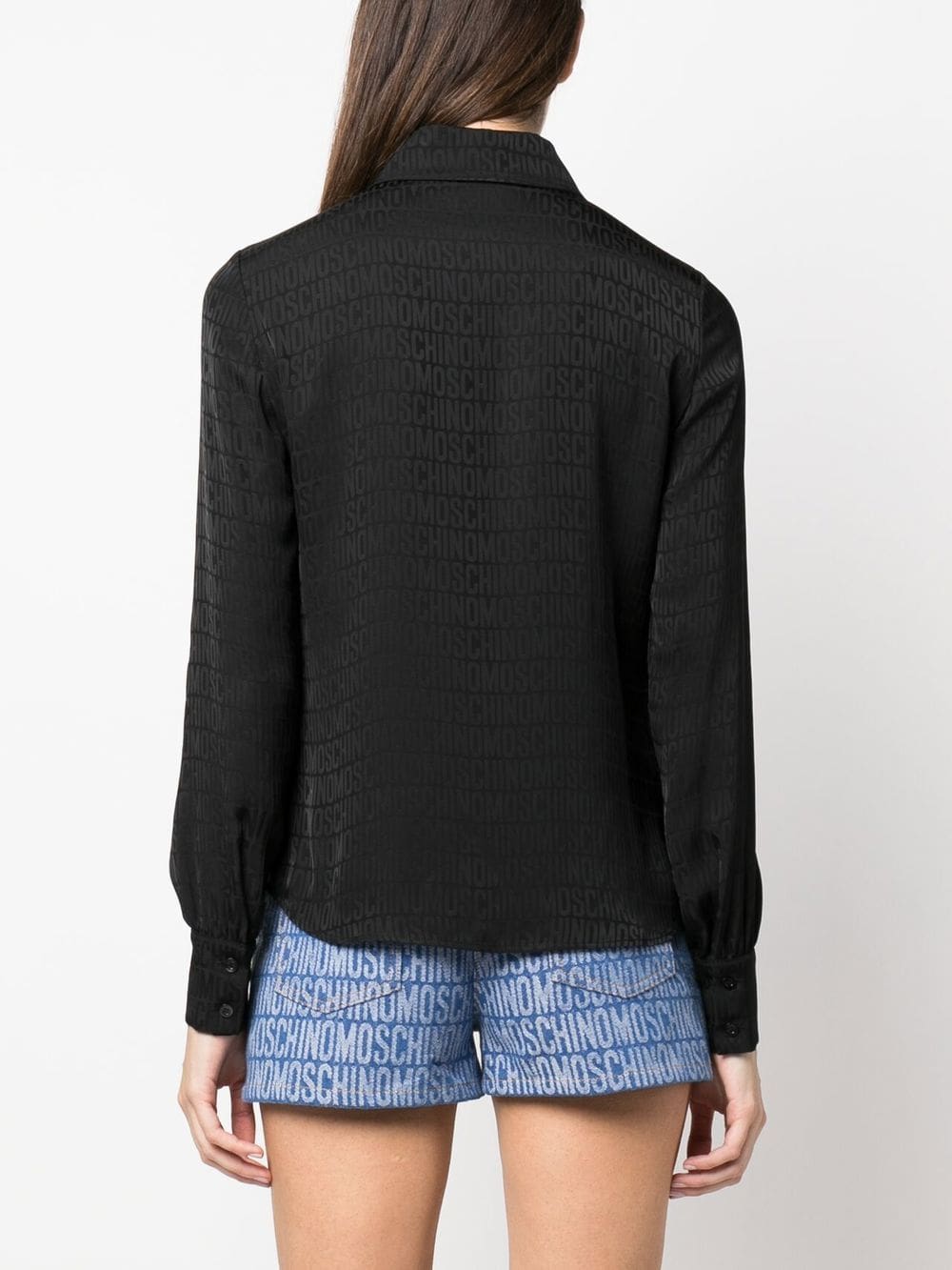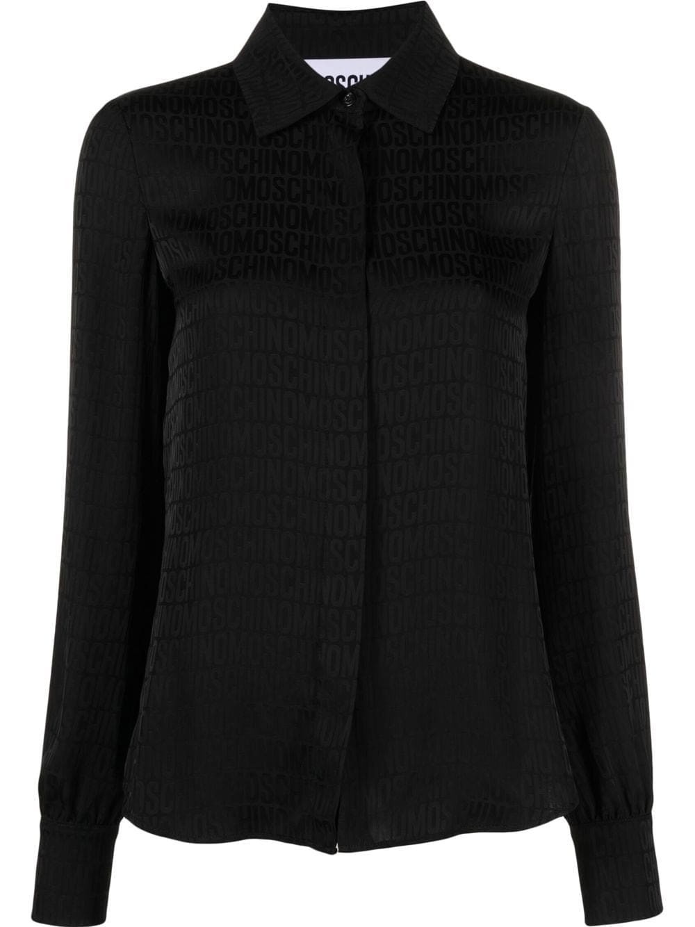 black silk blend monogram print classic collar long sleeves front button fastening