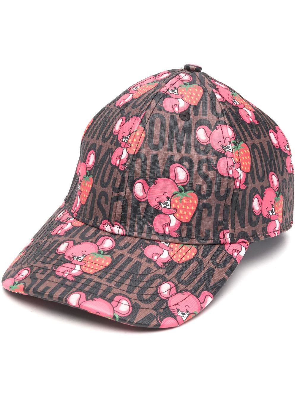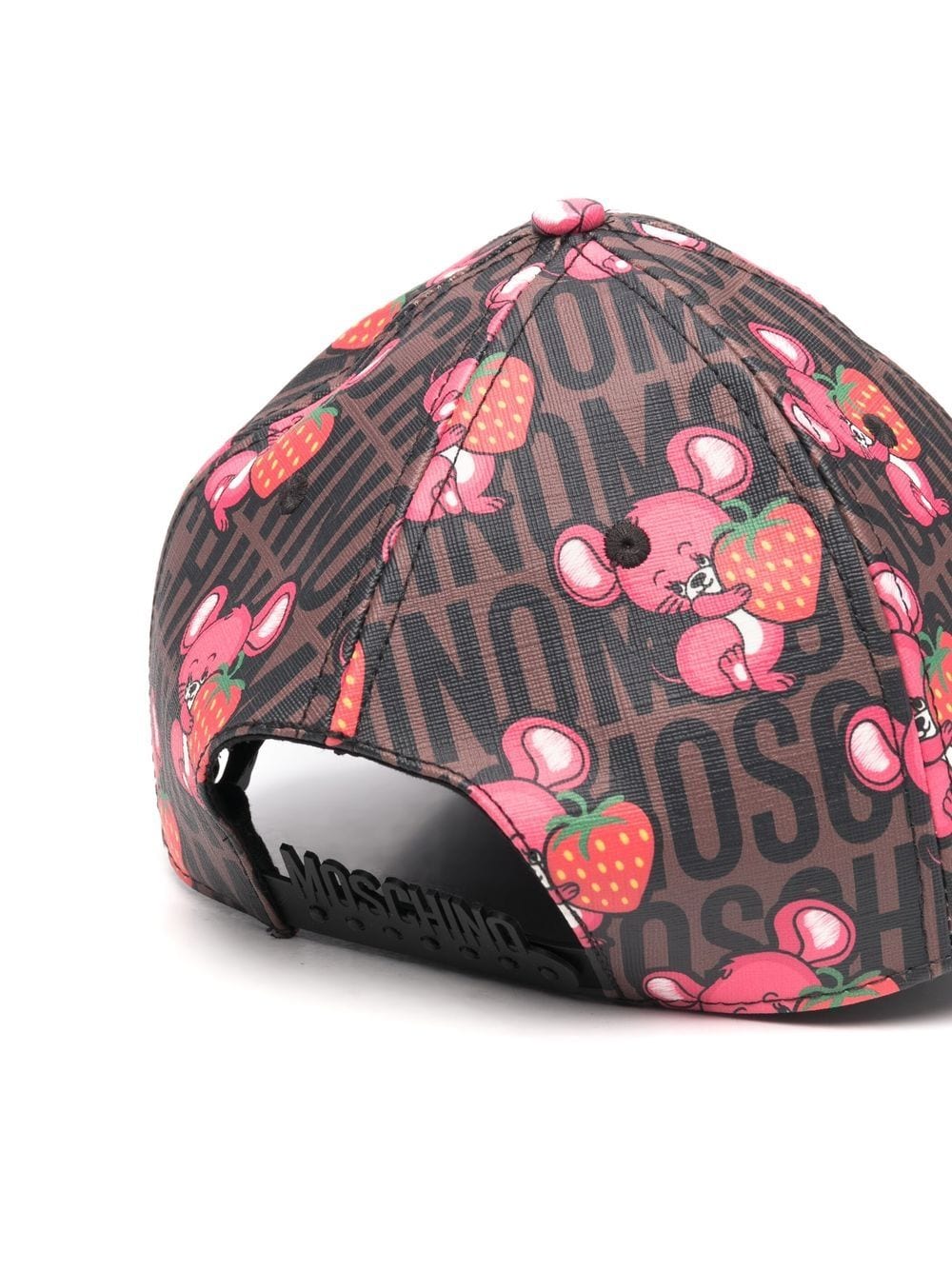brown flamingo pink cotton all-over graphic print all-over logo print five-panel construction curved peak logo plaque adjustable strap to the rear