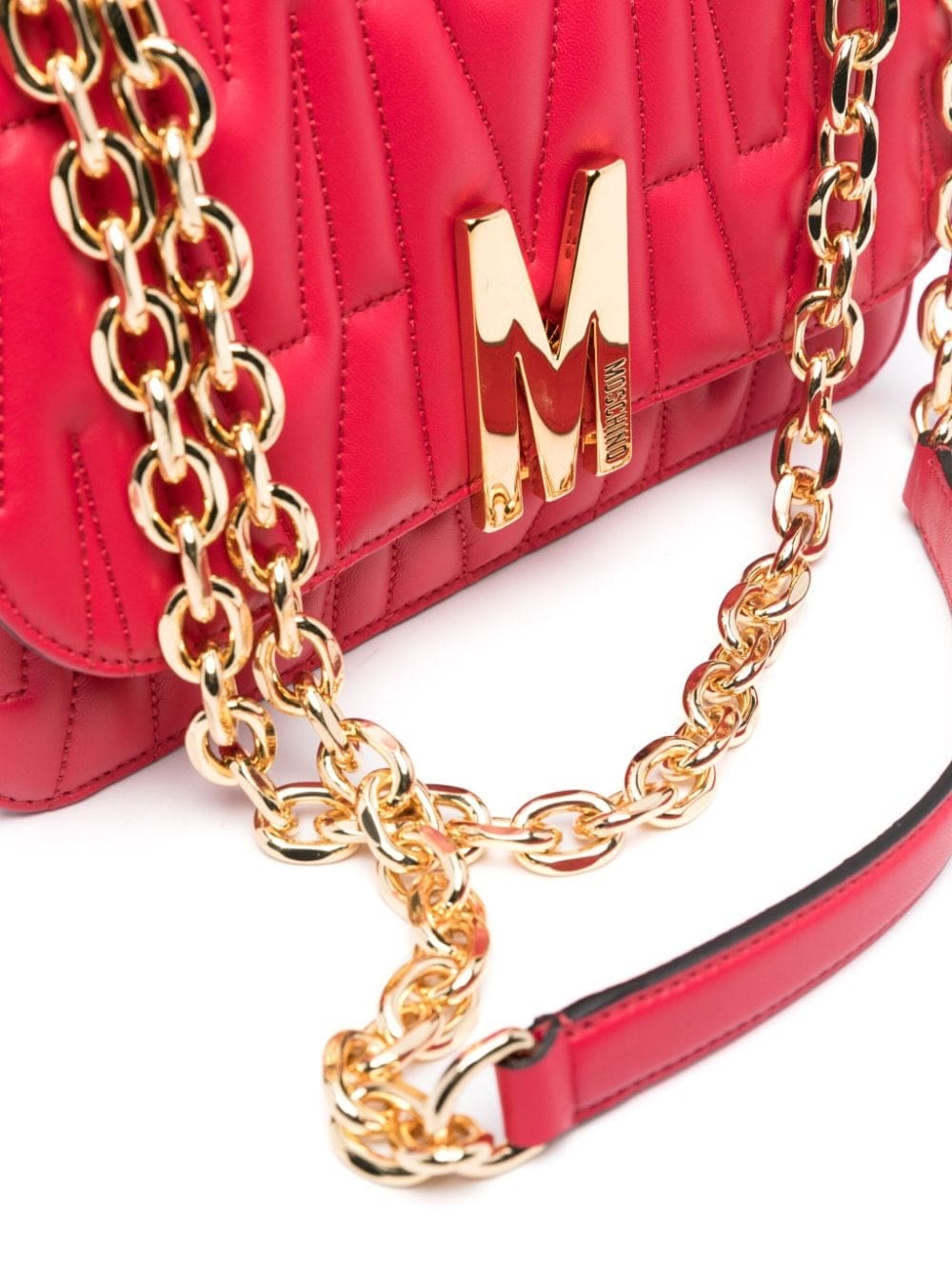 - adjustable leather and chain-link shoulder strap
