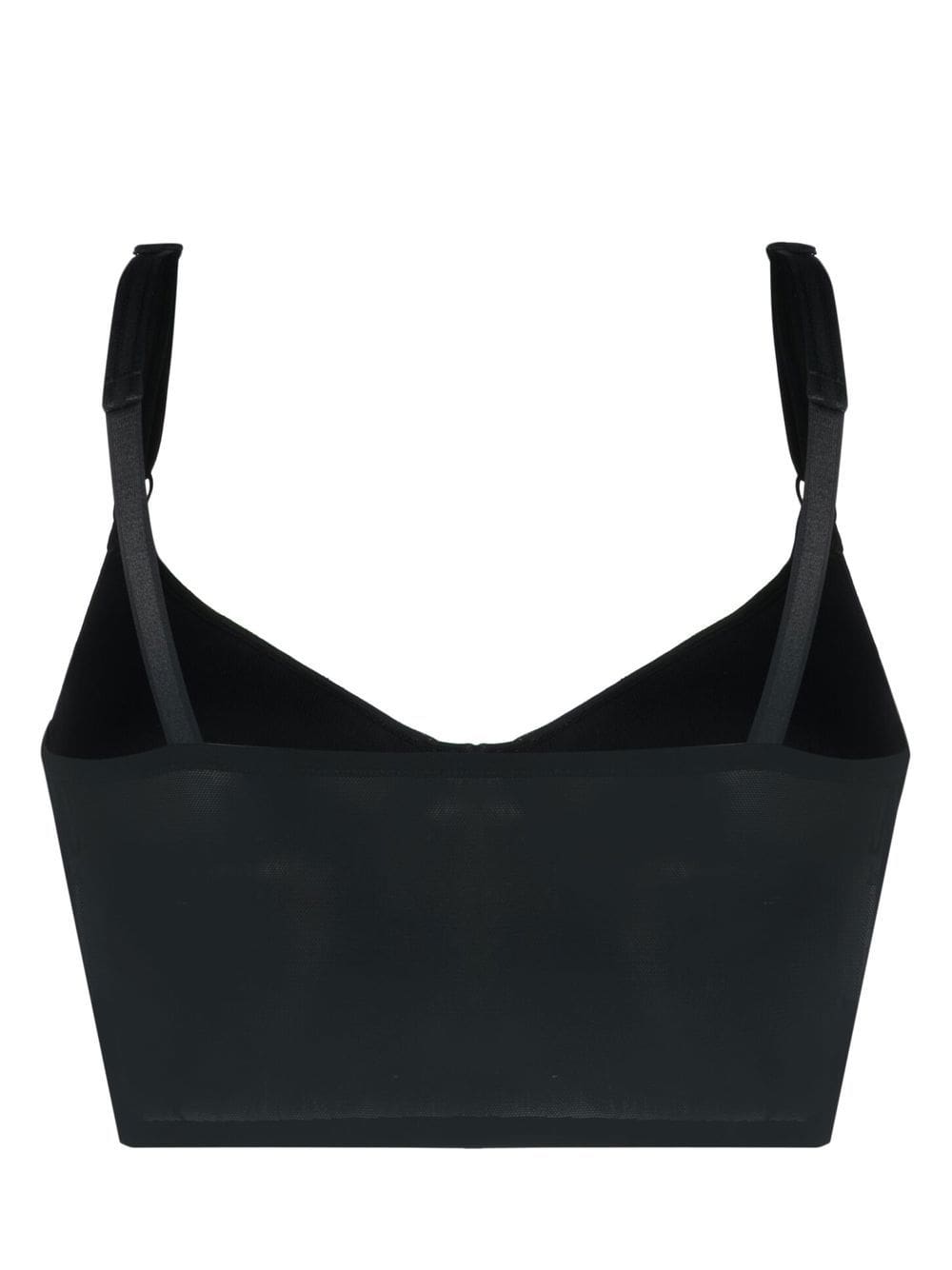 black cropped signature Teddy Bear motif bustier-style neckline adjustable spaghetti straps