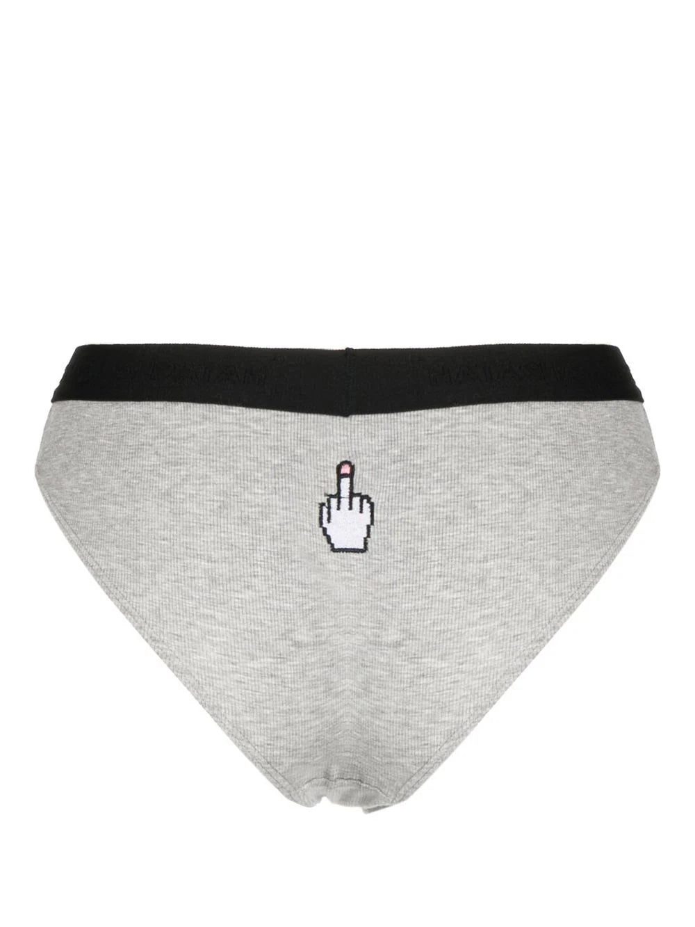 grey stretch-cotton embroidered motif logo waistband Just a reminder that this piece must be tried on over your own garments.