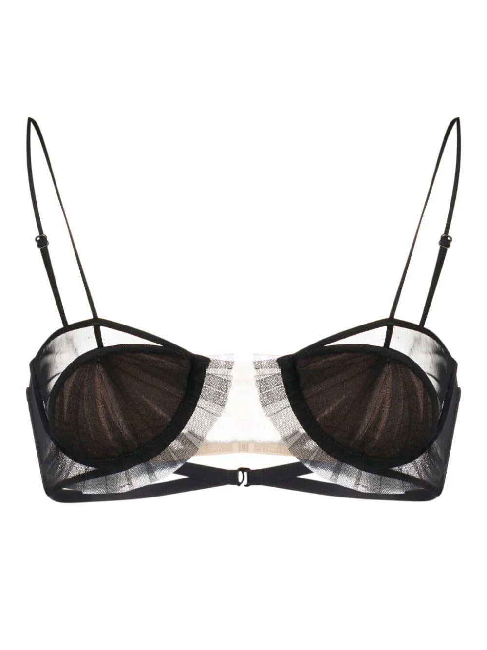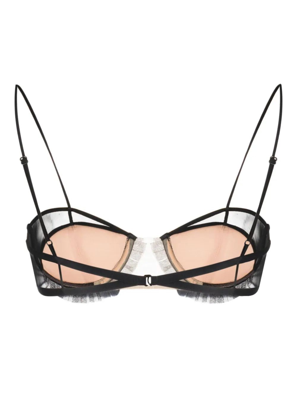 Created by London-based label Nensi Dojaka, this delicate bra is designed with carefully placed layers and ruffles. Semi-sheer panels crafted from a silk blend enhance its allure.