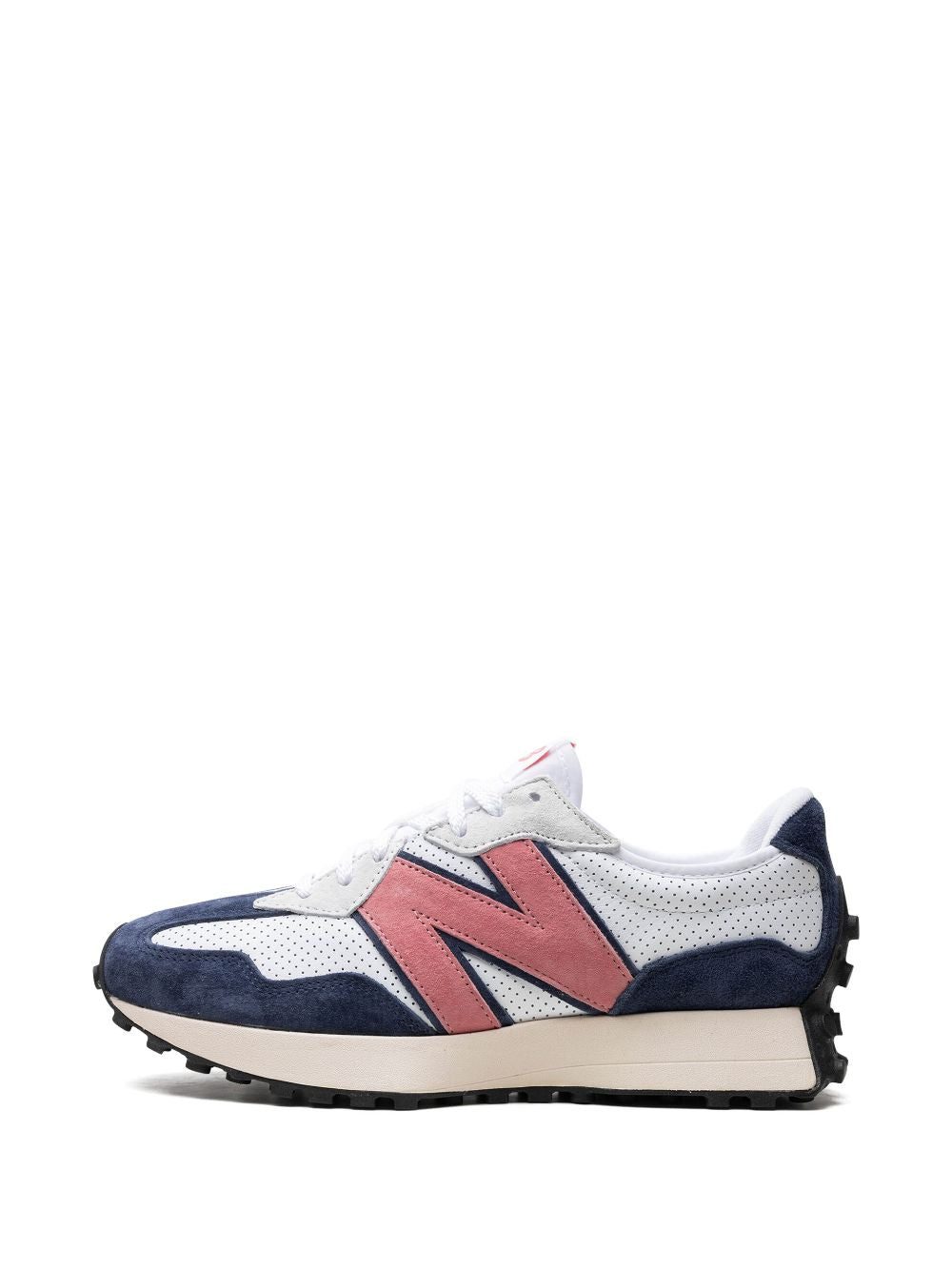 Inspired by a heritage New Balance silhouette but with contemporary detailing, the 327 is presented here in a contrasting navy and white colourway. Sitting atop a cushioned rubber sole, the low-top upper presents a sleek look.