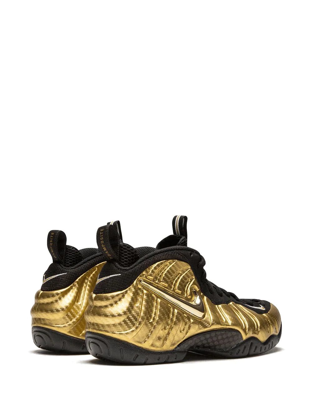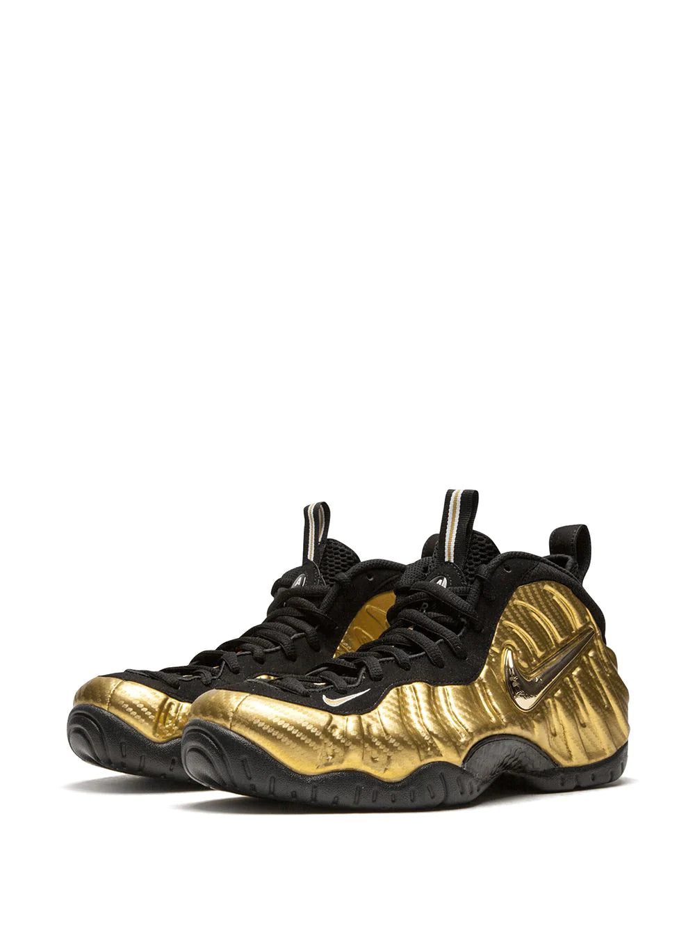 Designed in 1971 to represent movement and speed, Nike’s instantly recognisable Swoosh logo is a signature label hallmark. These gold-tone and black Air Foamposite Pro sneakers feature a metallic sheen, a round toe, a lace-up front fastening, a signature Nike swoosh, a pull tab at the rear, a signature Nike swoosh and a rubber sole. These styles are supplied by a premium sneaker and street wear marketplace. Stocking only the most sought-after footwear and clothing, they source and curate some of the most hard-to-find items from around the world.