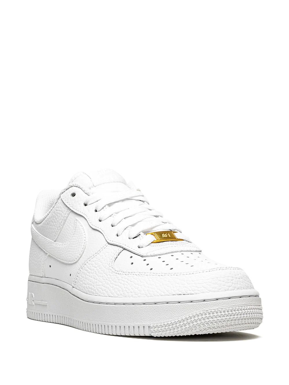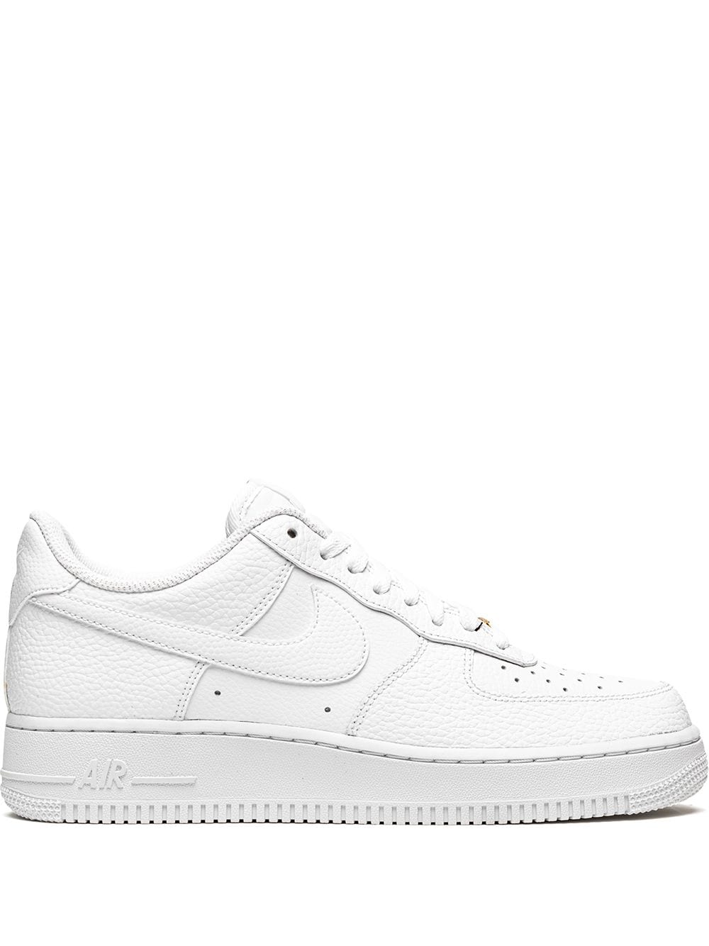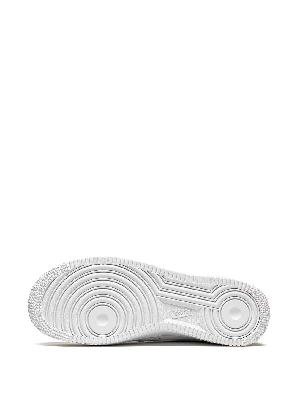 Released in 1982, the Nike Air Force 1 has since served as a canvas for artists and designers. Here, designed in a ’triple white’ colour scheme, the versatility of these '07 sneakers is mixed with extreme comfort because of their Nike Air cushioning in the heel, while a gold-tone logo plaque on the laces finishes the look.