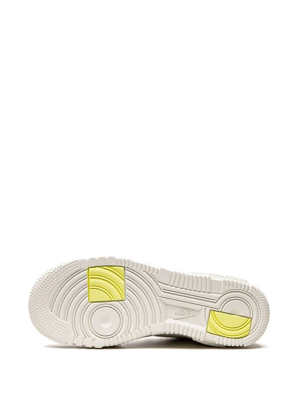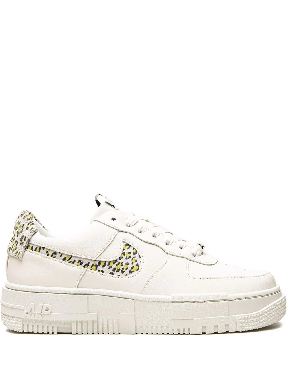 Nike's Air Force 1 Pixel SE grabs the attention thanks to its distorted outsole and lifted midsole feature large - with pixelated details for a modern touch. The low-top sneaker is crafted from white leather and features other unique details, like an inverted animal print Swoosh logo on the sides. Underneath, a white rubber sole adds comfort.