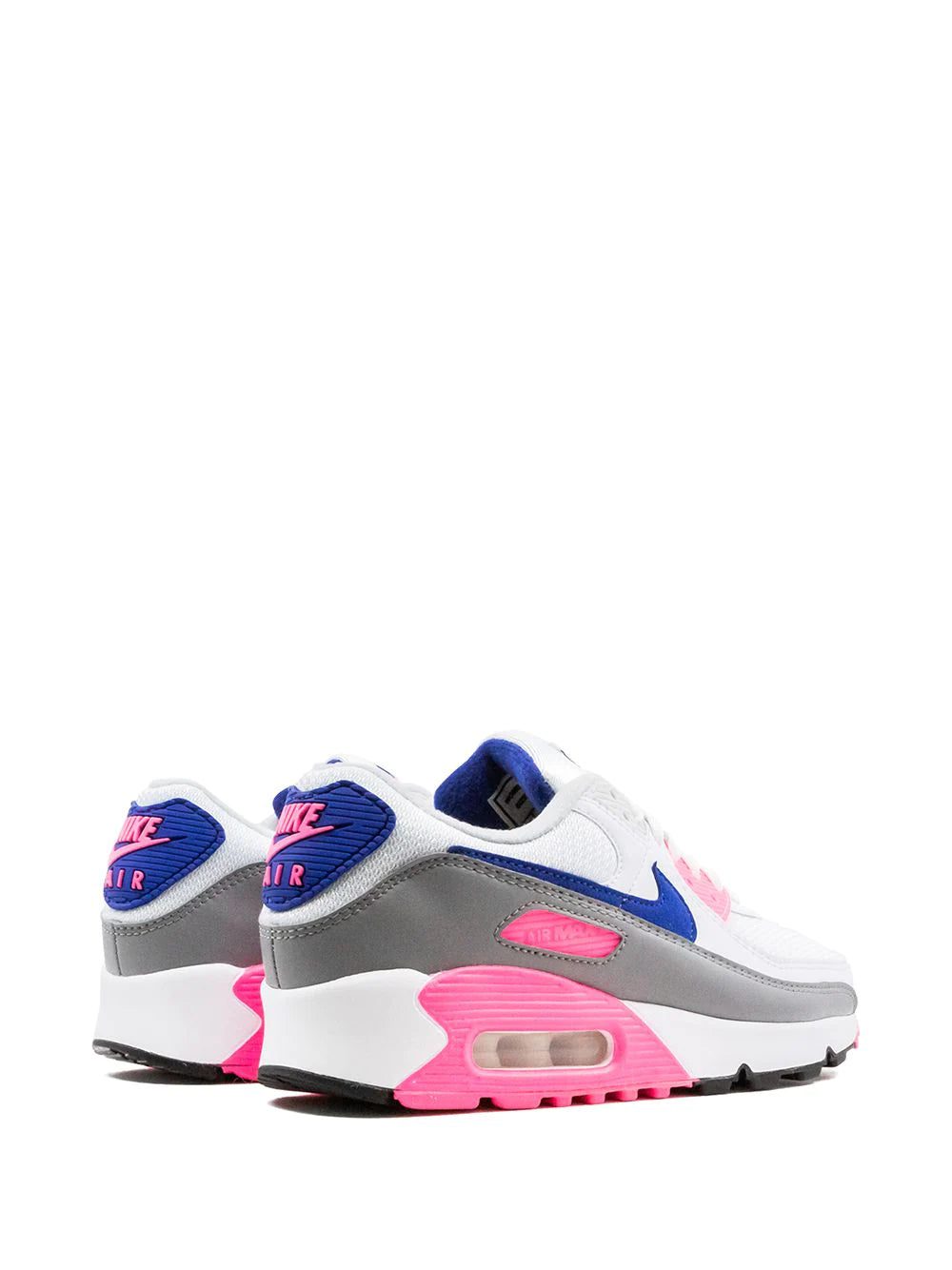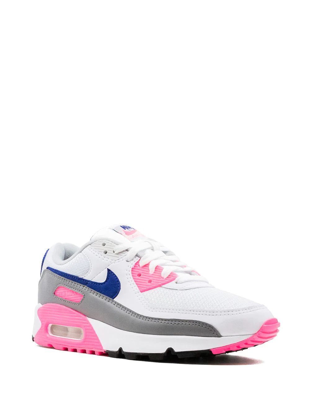 Get some air. With these white and concord pink leather Air Max 90 sneakers from Nike, you can hop skip or jump your way through the day. Lace up and head out.