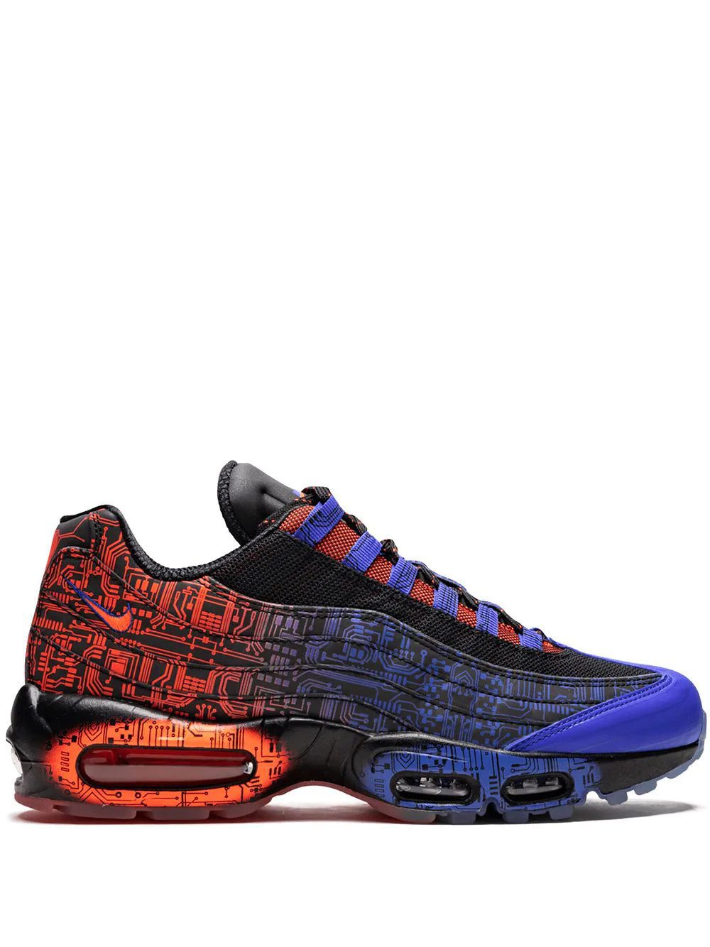 From the 2015 Nike x Doernbecher Freestyle collection, this Air Max 95 was designed by patient Jacob Burris, a 14 year old with a rare heart condition. Inspired by his family nickname “The Bionic Boy”, the shoe features a circuit board graphic on the upper, a heart graphic under the heel and a proclamation: I WALK TO MY OWN BEAT on the sockliner. The red and blue accents are a nod to Jacob’s favorite superhero, Spider-Man. These styles are supplied by a premium sneaker and street wear marketplace. Stocking only the most sought-after footwear and clothing, they source and curate some of the most hard-to-find items from around the world.