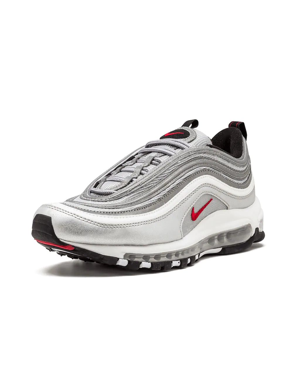 Supplied by a premier sneaker marketplace dealing with unworn, already sold out, in demand rarities. Each product is rigorously inspected by experienced experts guaranteeing authenticity. It couldn’t have been a 20th anniversary celebration for the Nike Air Max 97 without a return of the most iconic colorway, the “Silver Bullet”. Released in 2017, this anniversary edition of the classic Air Max 97 OG shoe features the same metallic silver upper with black and white detailing and red accents as the original, world-famous design. Comfortable mesh and Air Max technology will keep you comfortable all day long without sacrificing style. No Air Max fan should be without a pair of the Silver Bullet Air Max 97.