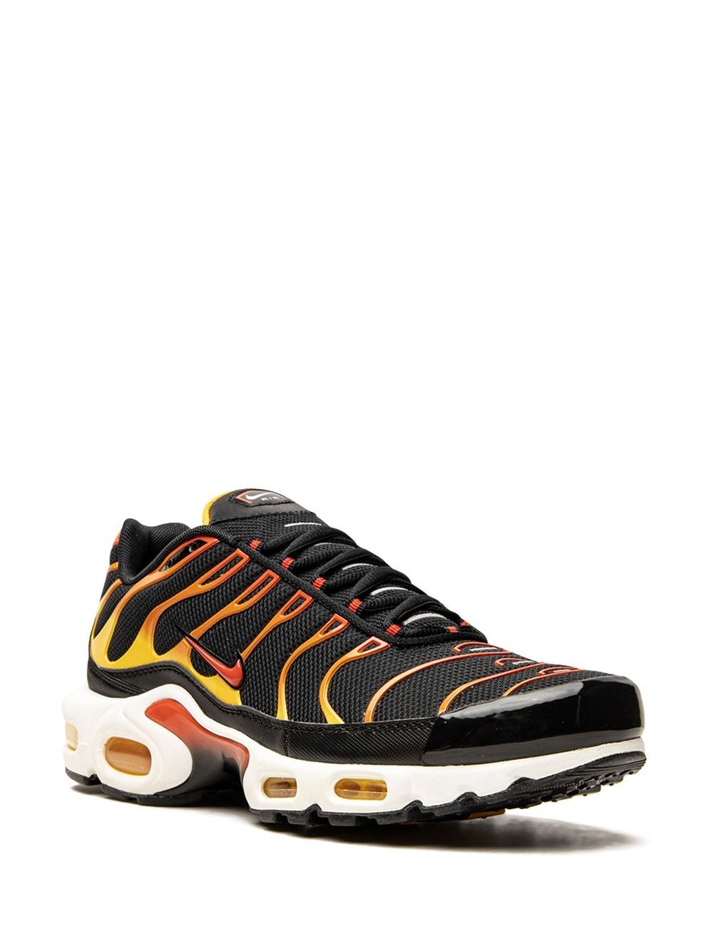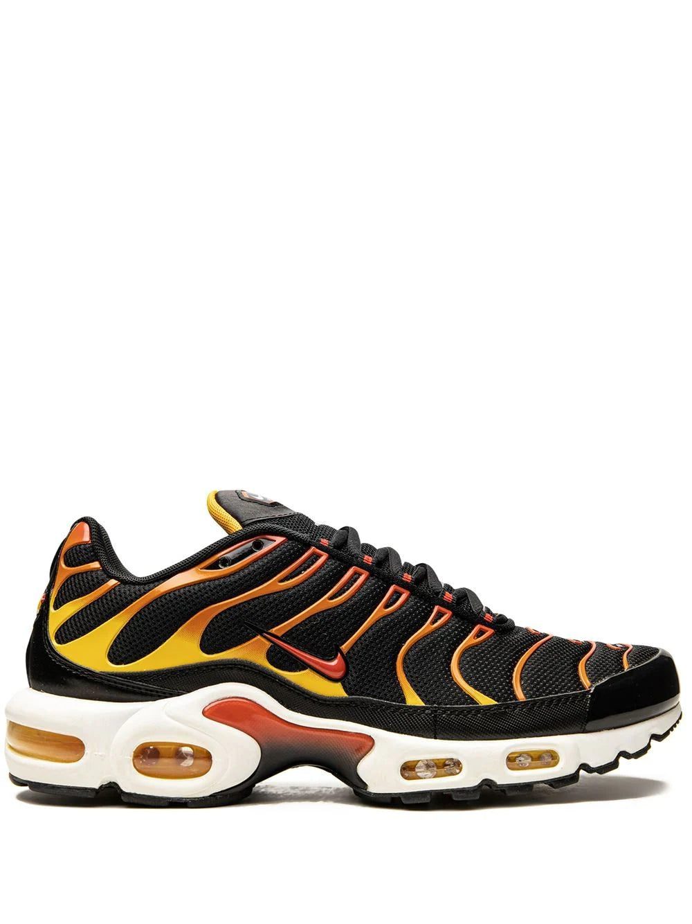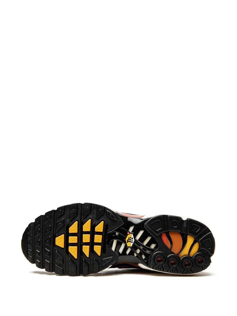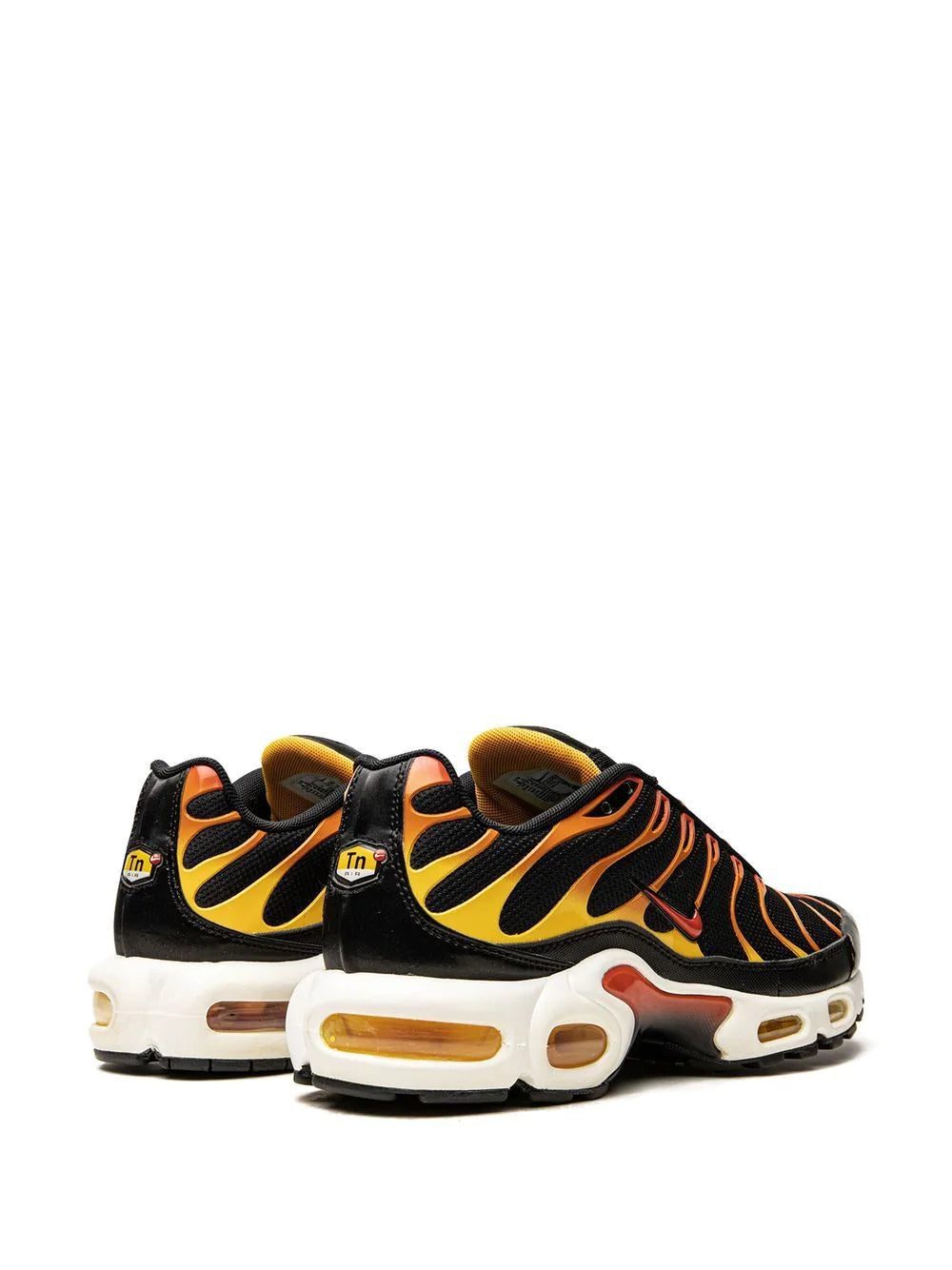 Inspired by the original model constructed in 1978, the Air Max Plus sneakers come with a visible Air technology in their heel, allowing fans more than just to feel the Air cushioning, to also see it. This model has become a hit with athletes and collectors by offering striking colour combinations - like, in this case, the black, yellow and orange - and reliable, lightweight cushioning.