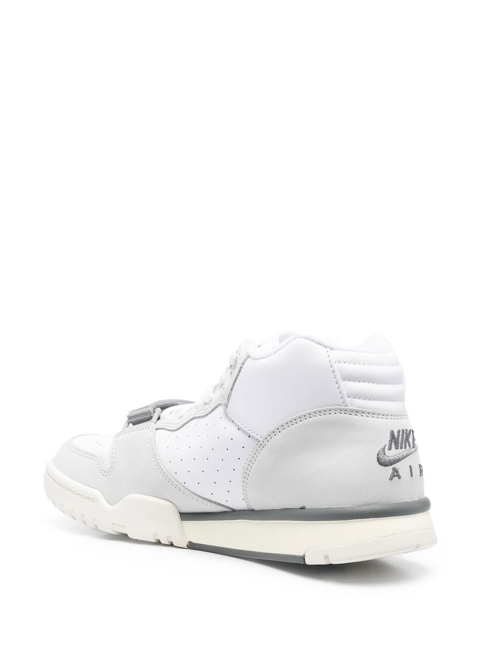 Combining features of a casual and a sports shoe, the Air Trainer 1 sneakers have become one of Nike’s most iconic silhouettes. Seen here in a grey and white colourway, the pair is finished with a signature Swoosh logo to the sides.