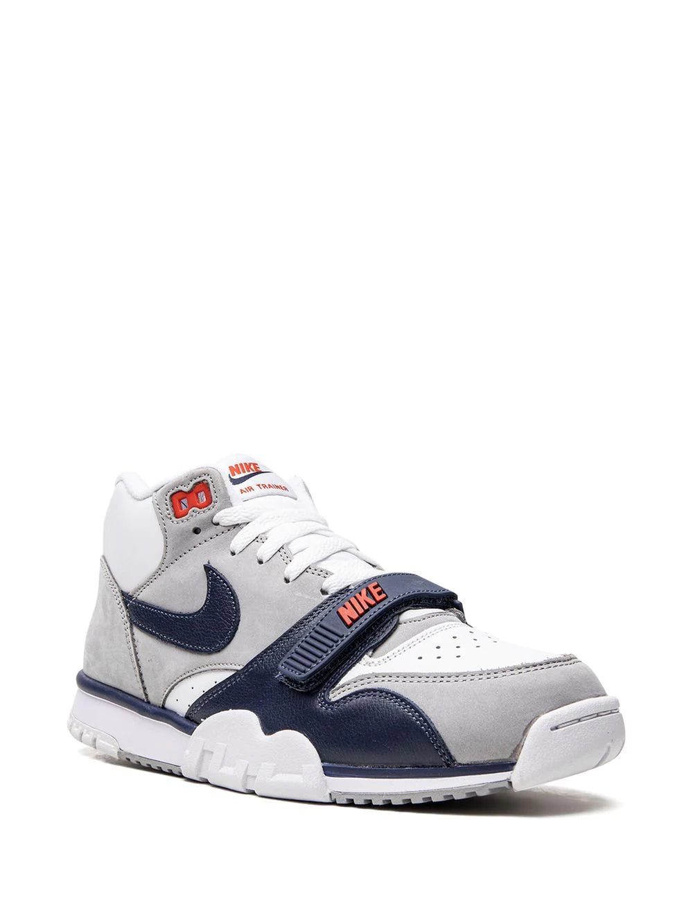 Combining features of a casual and a sports shoe, the Air Trainer 1 sneakers have become one of Nike’s most iconic silhouettes. Seen here in a grey, dark blue, white and orange colourway, the pair is finished with a signature Swoosh logo to the sides.