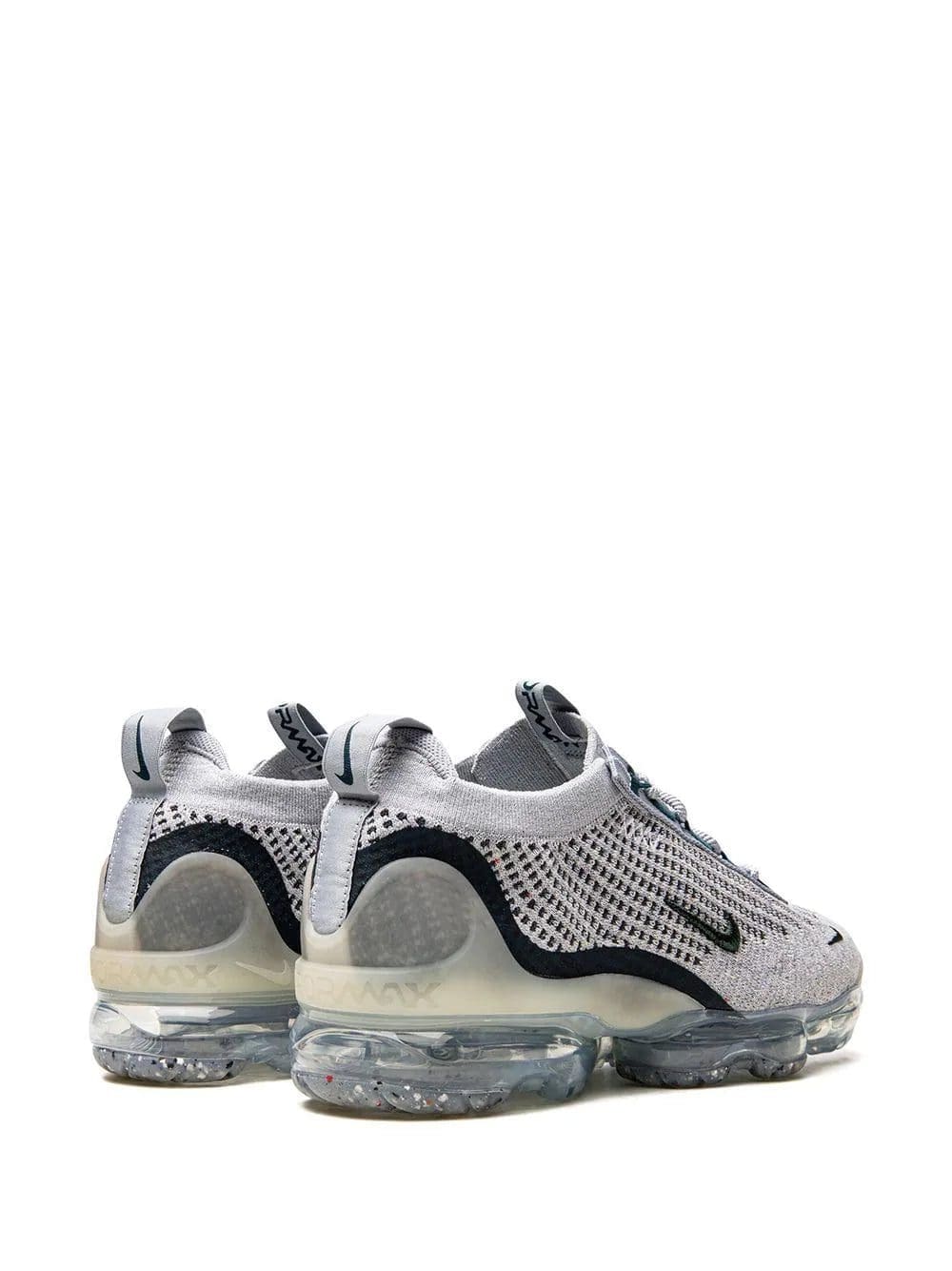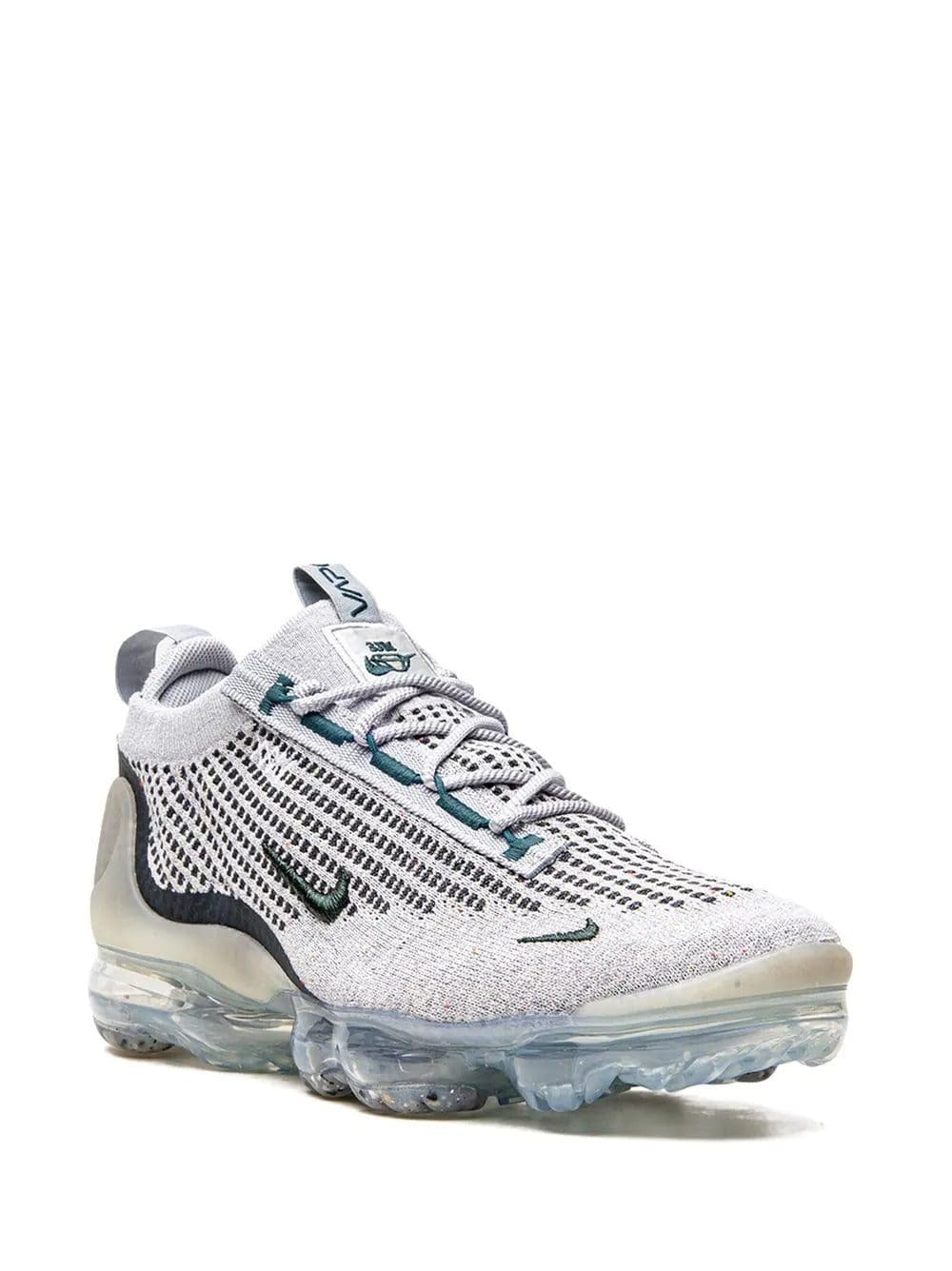 Nike's Air VaporMax 2021 now appears in a light grey and green colour scheme. Here, the Flyease tightening system has been removed for a traditional lacing system and the heel clips and toe cap now have a thicker Swoosh on the panels. The usual Flyknit on the upper and the VaporMax Air unit stays the same.