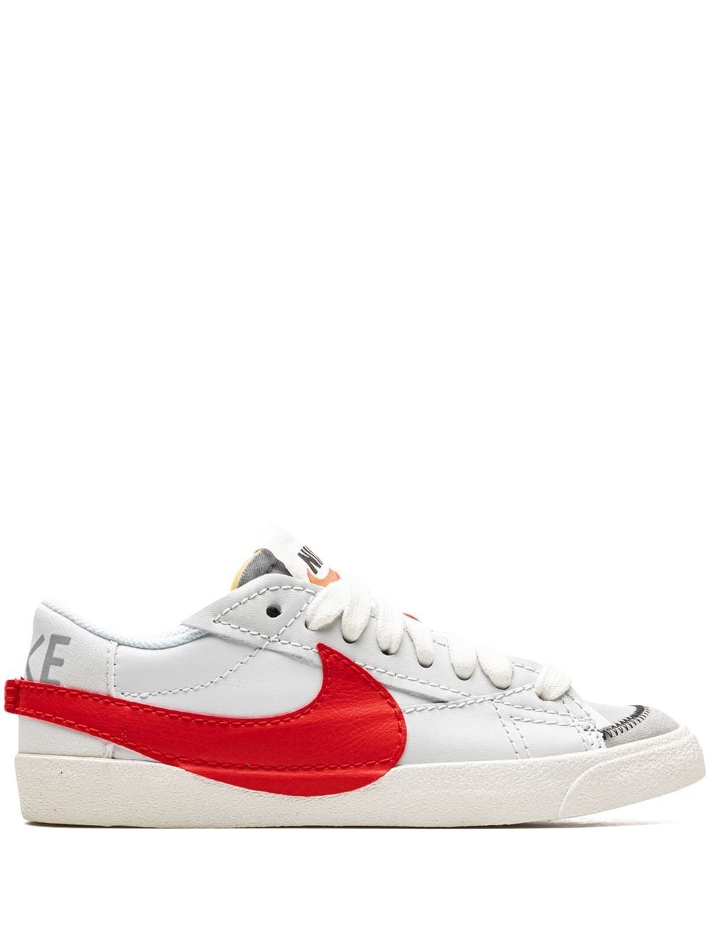 Nike's signature low-top Blazers are updated for a contemporary audience with an oversized Swoosh motif to each outer wall. In white and red hues, the classic silhouette features a branded foam tongue and jumbo laces.