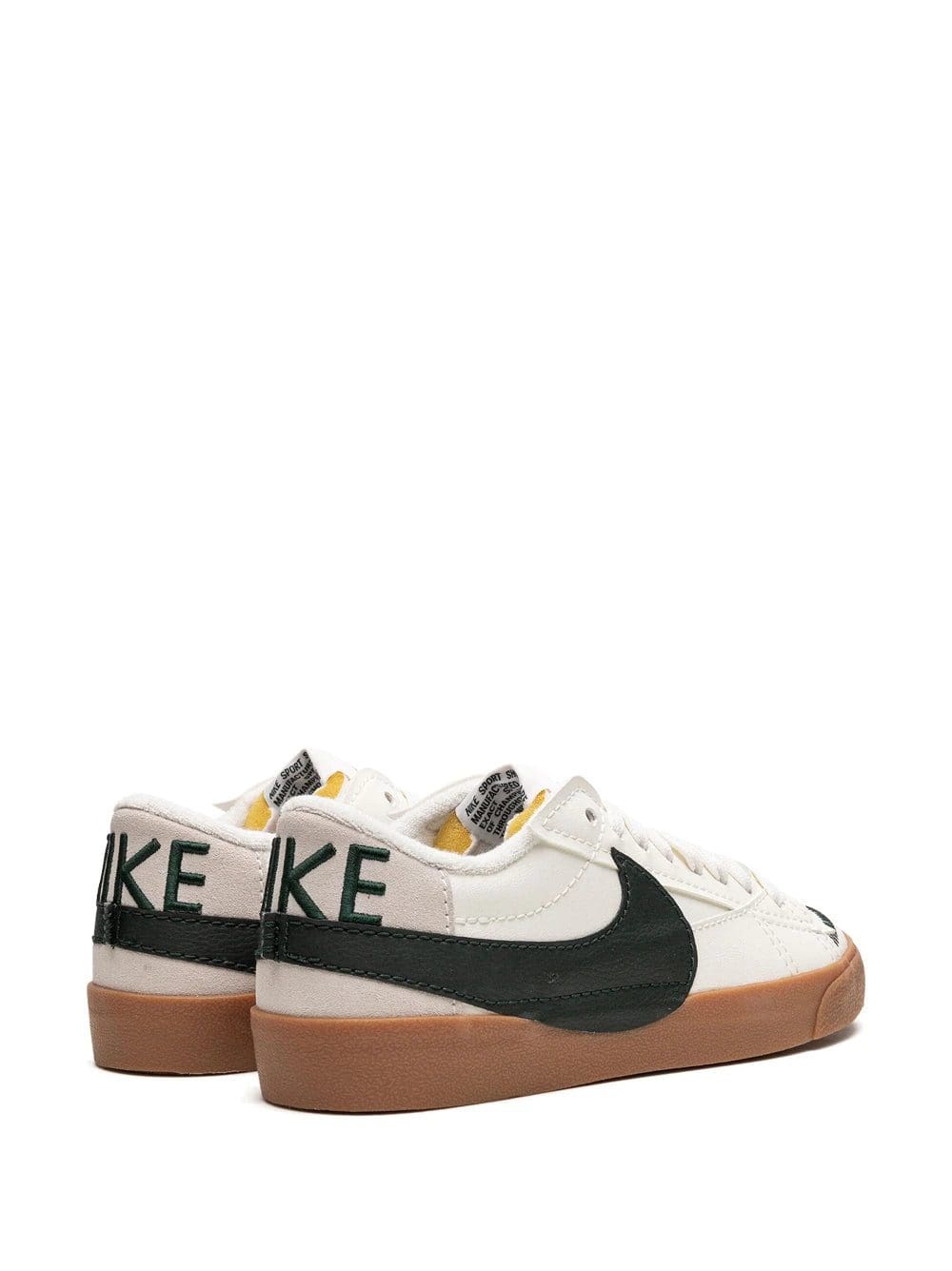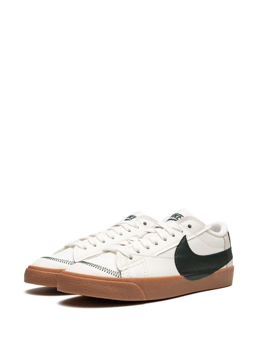 Nike's iconic Swoosh decorates the sides of these Blazer Low '77 Jumbo sneakers, in a super-sized iteration, for an instantly recognisable look. The white leather upper is punctuated with contrast stitching on the toes and a branded suede heel counter. Underfoot, a gum rubber sole lends all-important traction and a retro feel to the design.