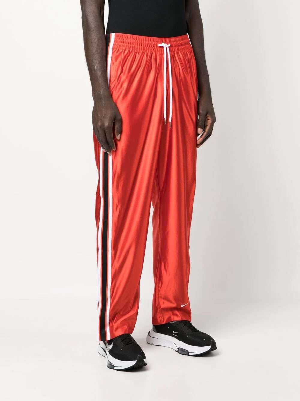 Circa side-stripe basketball pants from Nike featuring red, recycled polyester, side stripe detailing, logo print at the hem, elasticated drawstring waistband and two side welt pockets.