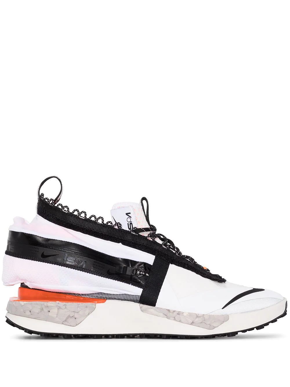These white Nike ISPA Drifter Gator sneakers have been crafted from a weather-resistant net construction with a hooded upper that can be extended to a knee-length height. They have round toes, elasticated lace-up front fastenings, zipped heel pockets, fused seams and rubber outsoles. Modelled on the water landing instructions found on an airplane, these Nike trainers are sure to propel your footwear game.