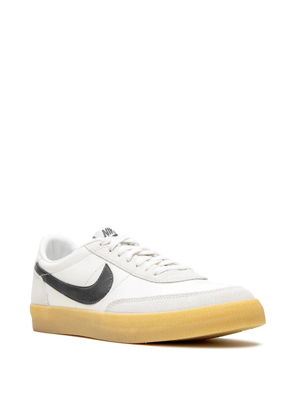 Supplied by a premier sneaker marketplace dealing with unworn, already sold out, in demand rarities. Each product is rigorously inspected by experienced experts guaranteeing authenticity. Nail the shot every time. With these sail white, oil grey and gum yellow leather and rubber Killshot 2 low-top sneakers from Nike you will have precision and comfy feet. Featuring a round toe, a flat rubber sole, a lace fastening, a signature Nike swoosh and a branded insole.