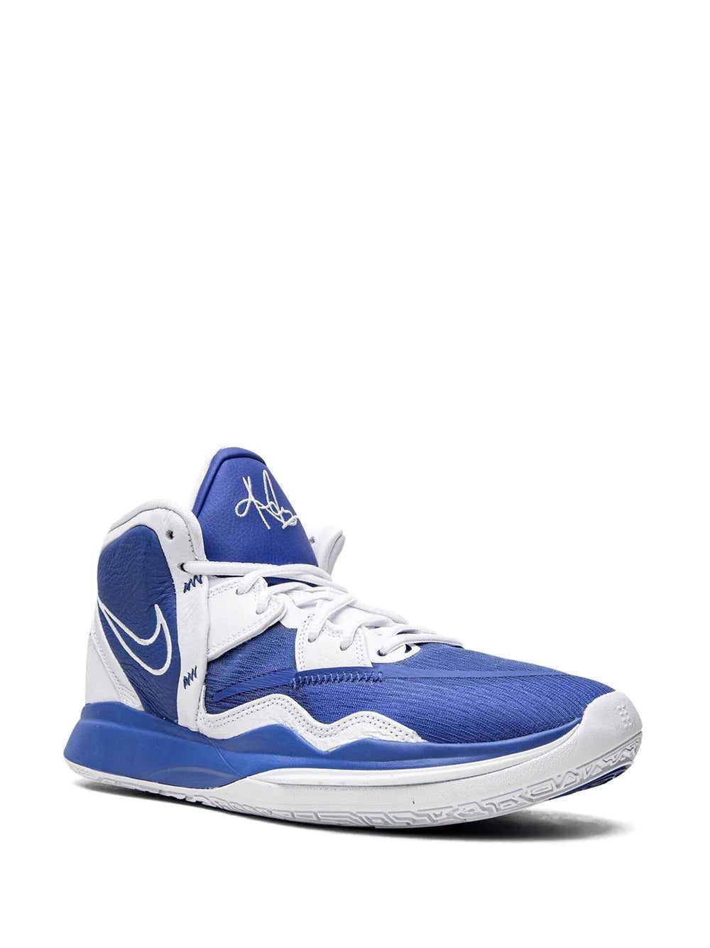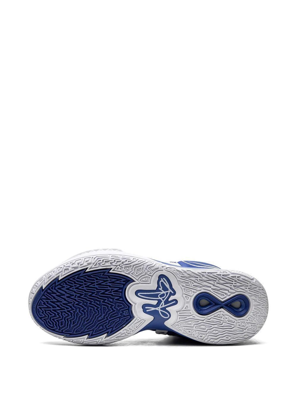 Nike's Kyrie Infinity now appears dressed in a white and royal blue colour scheme. This pair is crafted to a high-top silhouette with Kyrie logos on the tongue and heels. Underneath a rubber outsole adds comfort and traction to the shoe.