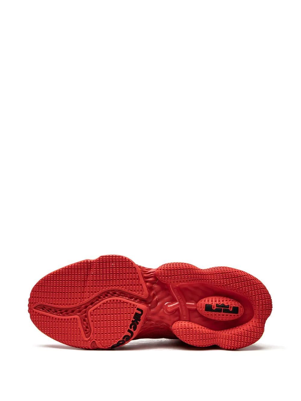 Nike's LeBron 19 Low sneakers arrive here in a deep red hue that's accented by gold Swoosh logos on the sidewalls. They feature black contrast trims along the collars, tongues, laces and heels.