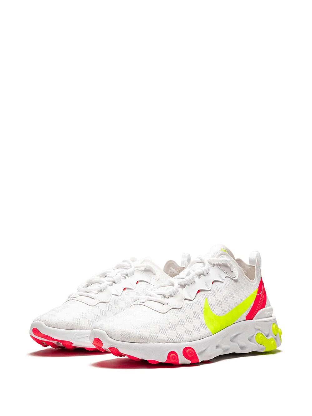 Supplied by a premier sneaker marketplace dealing with unworn, already sold out, in demand rarities. Each product is rigorously inspected by experienced experts guaranteeing authenticity. Give your days a kick with these white, pink and volt green React Element 55 sneakers from Nike. And bounce onto any adventure life throws at you. Featuring a signature Nike swoosh, a checkered pattern, a pull tab at the rear, a lace-up front fastening, an almond toe and white React foam midsole.