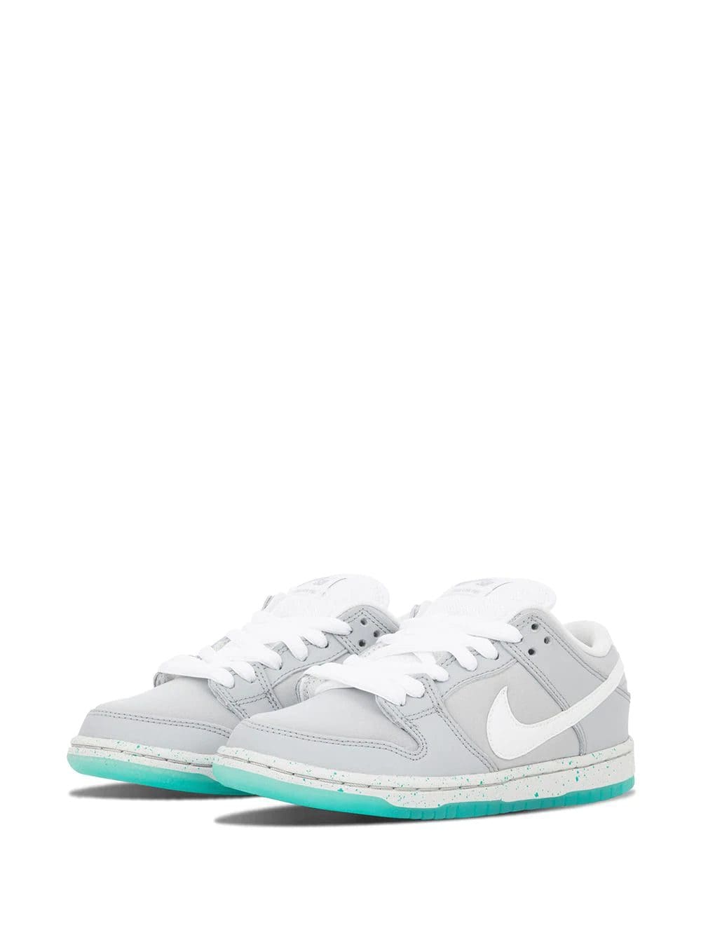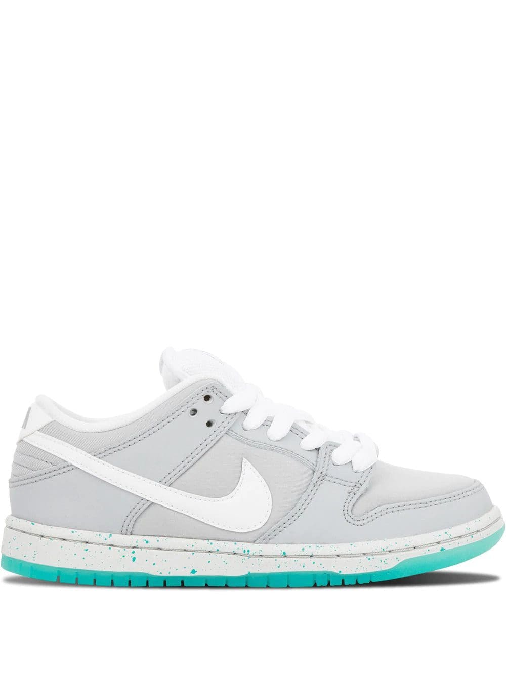 Supplied by a premier sneaker marketplace dealing with unworn, already sold out, in demand rarities. Each product is rigorously inspected by experienced experts guaranteeing authenticity. Inspired by the iconic colorway of the Nike Mag from Back to the Future Part 2, the Nike SB Dunk Low receives this “Marty McFly” colorway in grey, white, and teal green. If you can’t score a pair of the extremely coveted Mags, here’s your next best option.