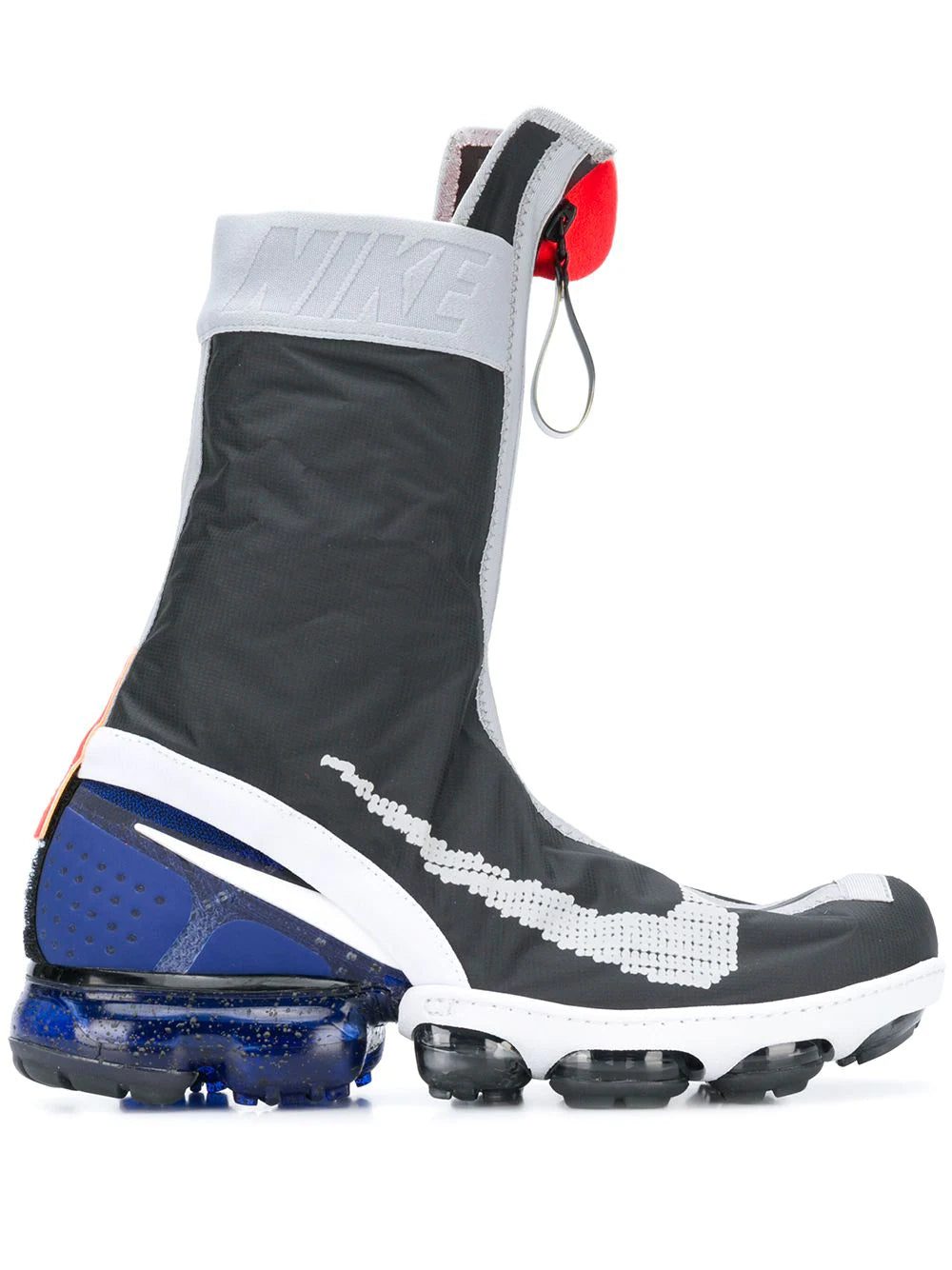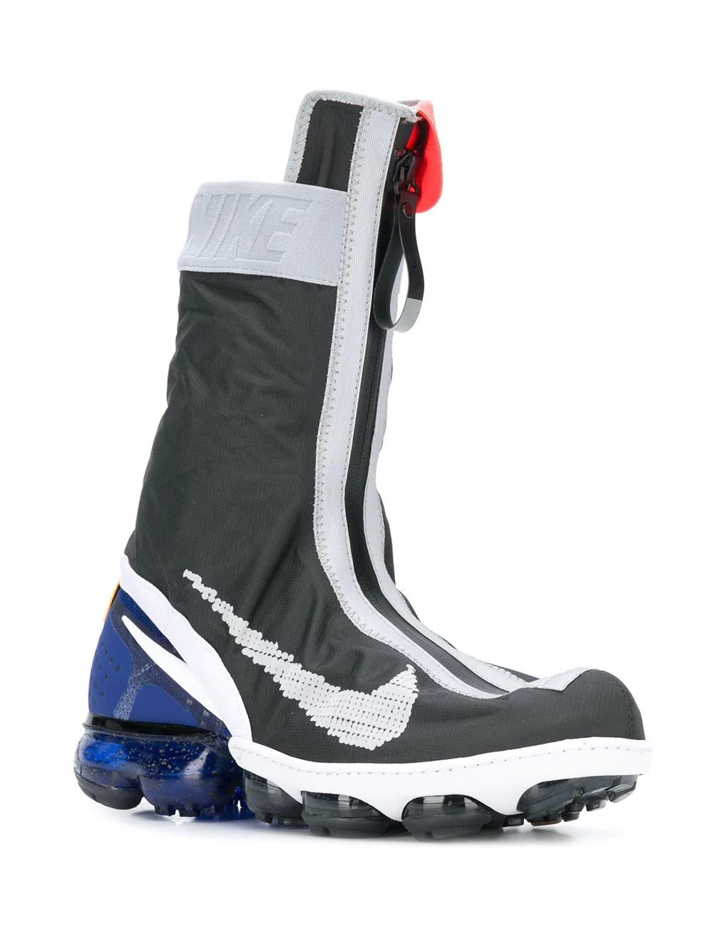 Dark grey Vapormax FK sneakers from Nike featuring a round toe, a lace-up front fastening, a front zip fastening, a signature Nike Air sole, an ankle length and a detachable waterproof cover.