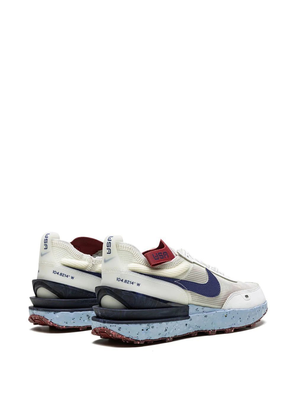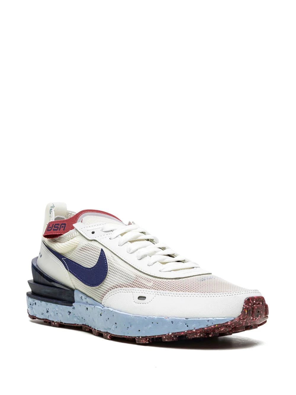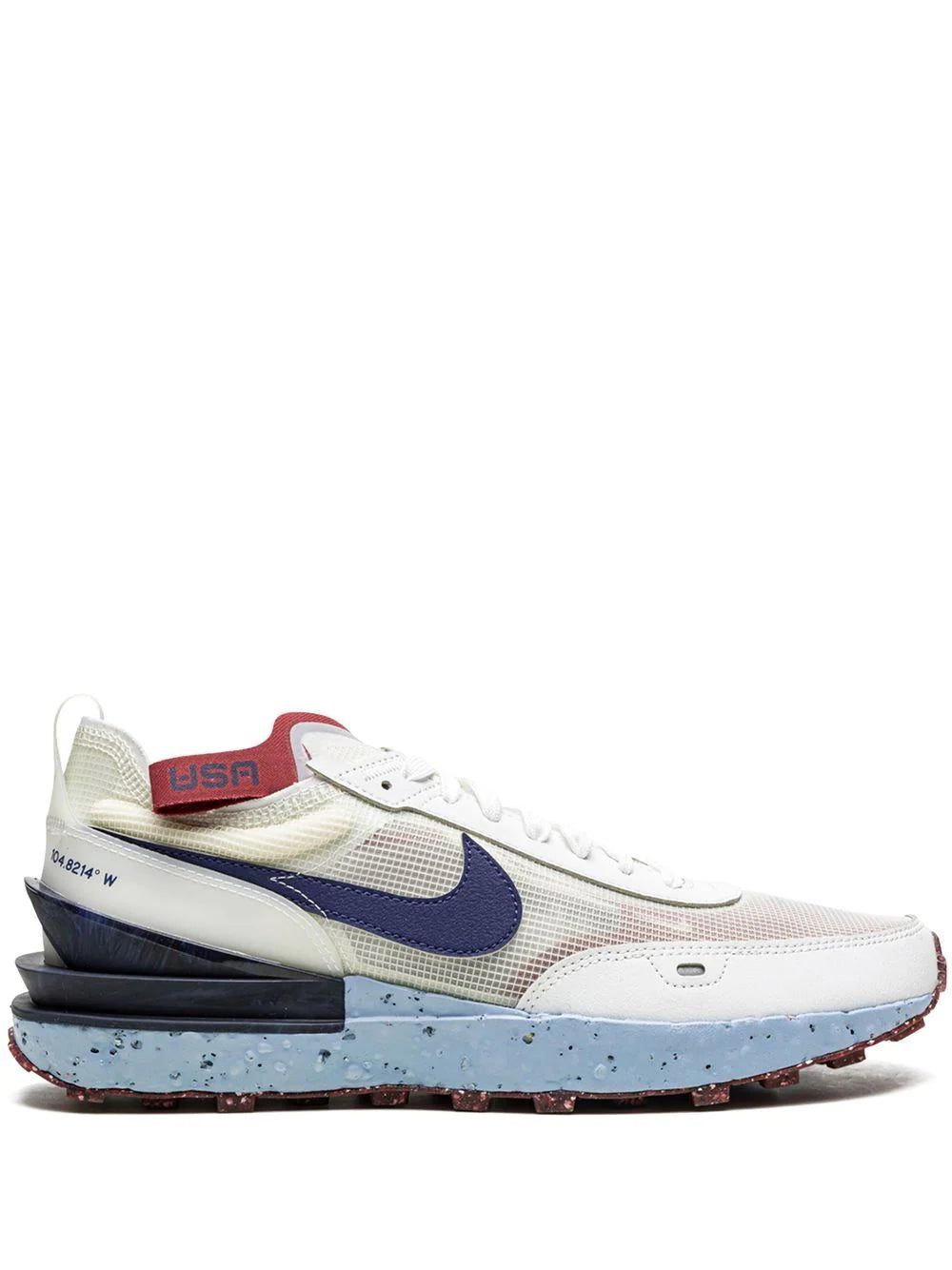 The Nike Waffle One Crater has a modern, eye-catching design in white, red and blue shades. This sneaker features a waffle outsole with some Nike Grind while the wedge midsole contains supportive Crater foam, and for added depth, the sporty upper includes transparent mesh. A blue Swoosh logo on the sides completes the design.