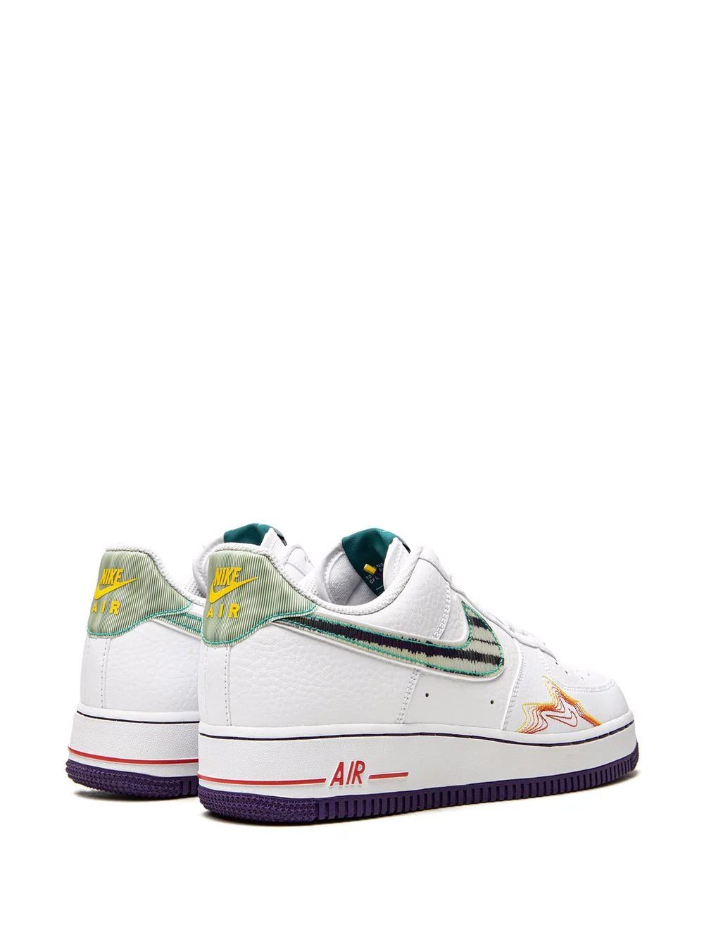 The De’Aaron Fox x Nike Air Force 1 Low “Pregame Pack” is part of a special collection of sneakers from Nike and Jordan Brand that celebrates the pregame rituals of basketball’s stars. Alongside Ben Simmons, Luka Doncic, and Brittany Griner, Fox, is one of the most enigmatic hoopers in the world. These sneakers are inspired by his ritual of listening to music, it features a white leather base with colourful sound wave detailing on both the forefoot, embroidered Swoosh on the mid-panel, heel, and purple insole. To finish, the retro-inspired Nike Hoops branding appears on the turquoise tongue tab while a red 'Air' logo on the heel contrasts the white rubber midsole.
