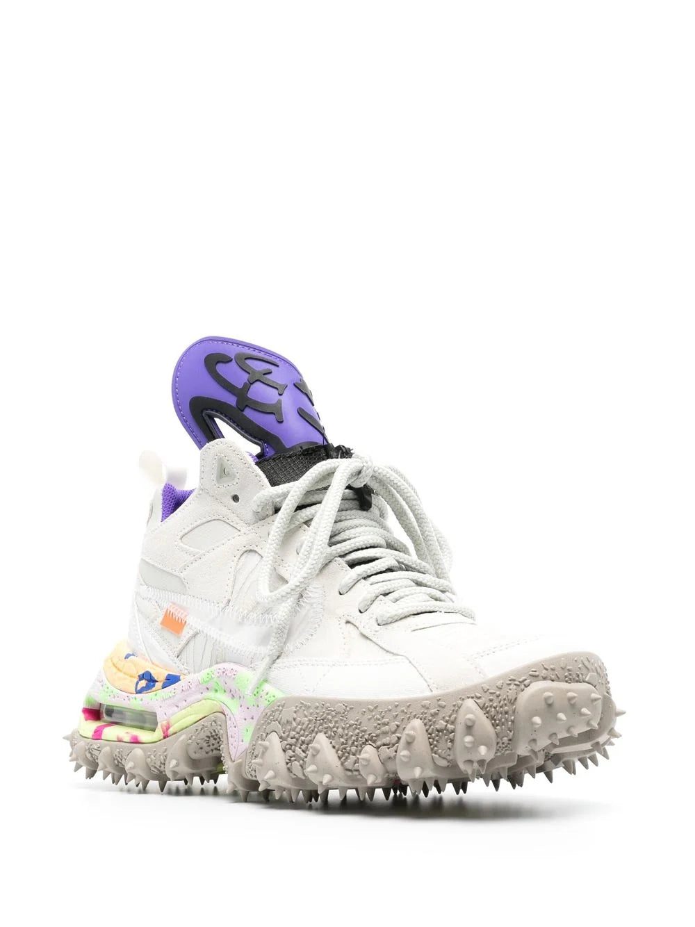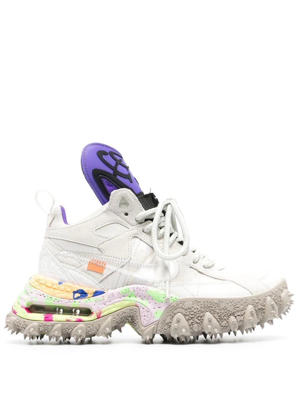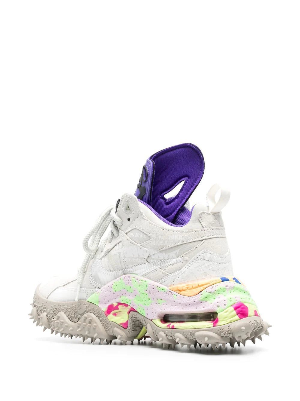 x Off-White Air Terra Forma "Summit White" sneakers from Nike featuring white/multicolour, calf leather, suede, signature Swoosh logo detail, round toe, front lace-up fastening, logo pull-tab at the heel, branded insole and chunky rubber sole. These styles are supplied by a premium sneaker marketplace. Stocking only the most sought-after footwear, they source and curate some of the most hard to find sneakers from around the world..