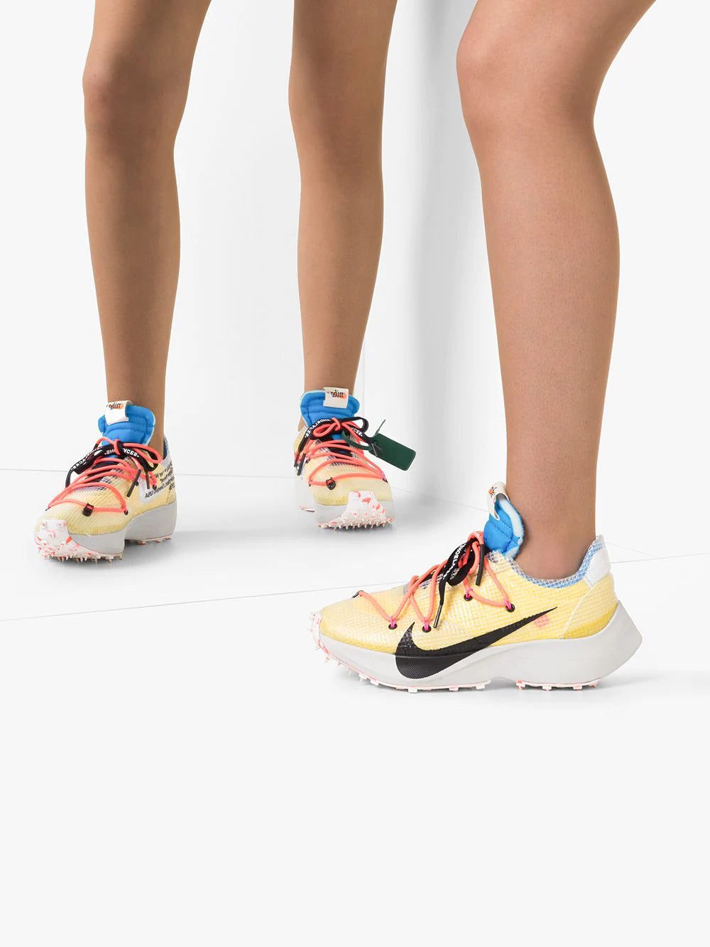 Sneakers with sole. These x Off-White Vapor Street sneakers from Nike will take you far and wide... literally. So, where to? Featuring a round toe, a lace-up front fastening, a logo patch at the tongue, a branded insole, the signature zip tab detail, a contrasting Swoosh motif at the sidewall and a thick rubber sole with spike detailing.