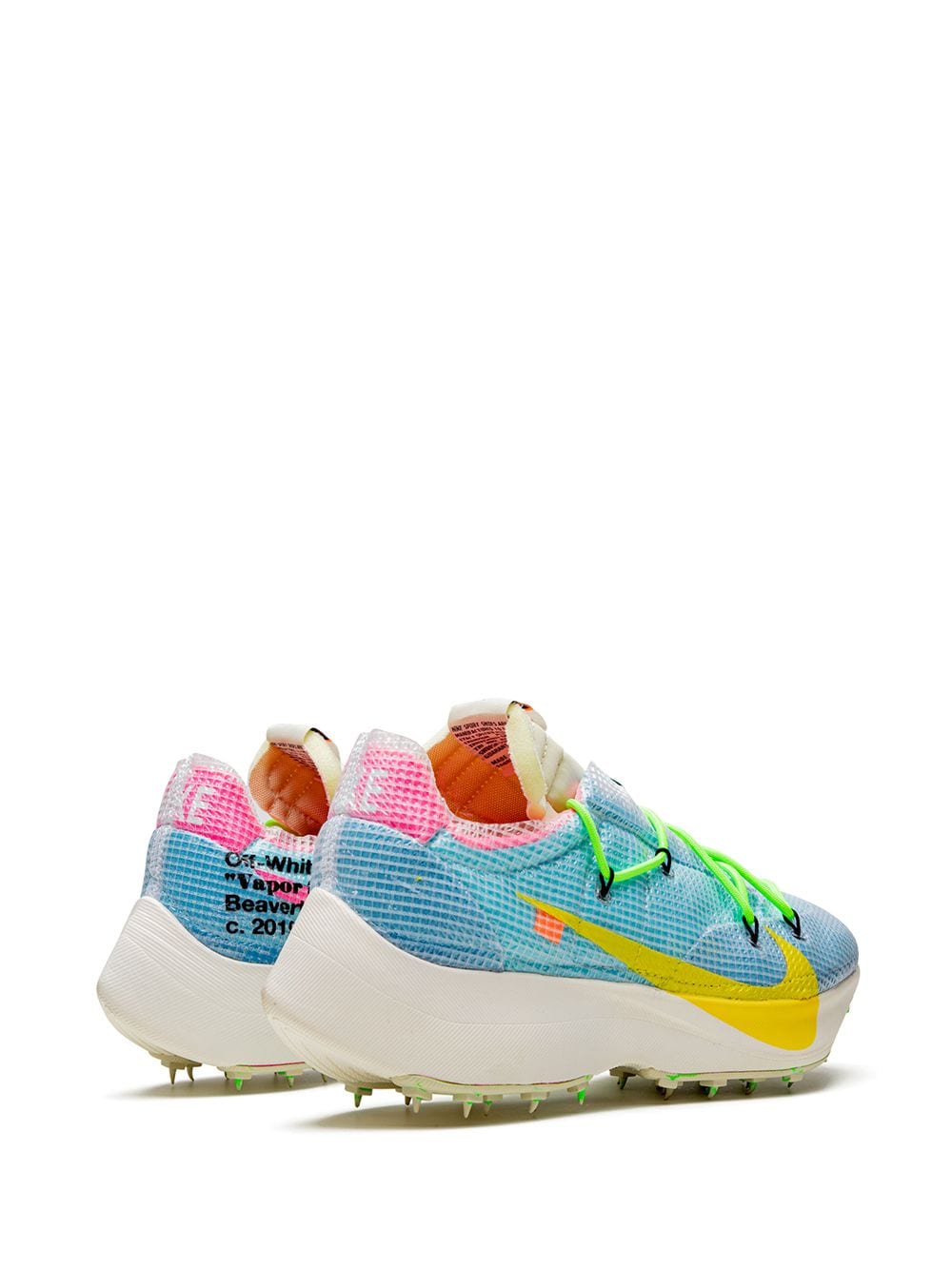 Supplied by a premier sneaker marketplace dealing with unworn, already sold out, in demand rarities. Each product is rigorously inspected by experienced experts guaranteeing authenticity. The Off-White x Nike Vapor Street “Blue/Yellow-Pink” integrates elements of Nike’s VaporFly and Zoom Fly into its design for another forward-looking silhouette cooked up by The Ten mastermind, Virgil Abloh. Fusing the past with the present has been a hallmark design function of Abloh, as the Chicago native takes archival 1970s runner components and mixes them with modern technology on the Vapor Street model. The outcome is a decidedly unique vibe as a sporadically placed lacing system and oversized black Swoosh that starts on the mid-panel and extends to the white rubber midsole highlights the upper. A semi-translucent material covers the entire upper. Rubberized track spikes on the outsole put the finishing touches on the Off-White x Nike Vapor Street. Release date: October 3rd, 2019.