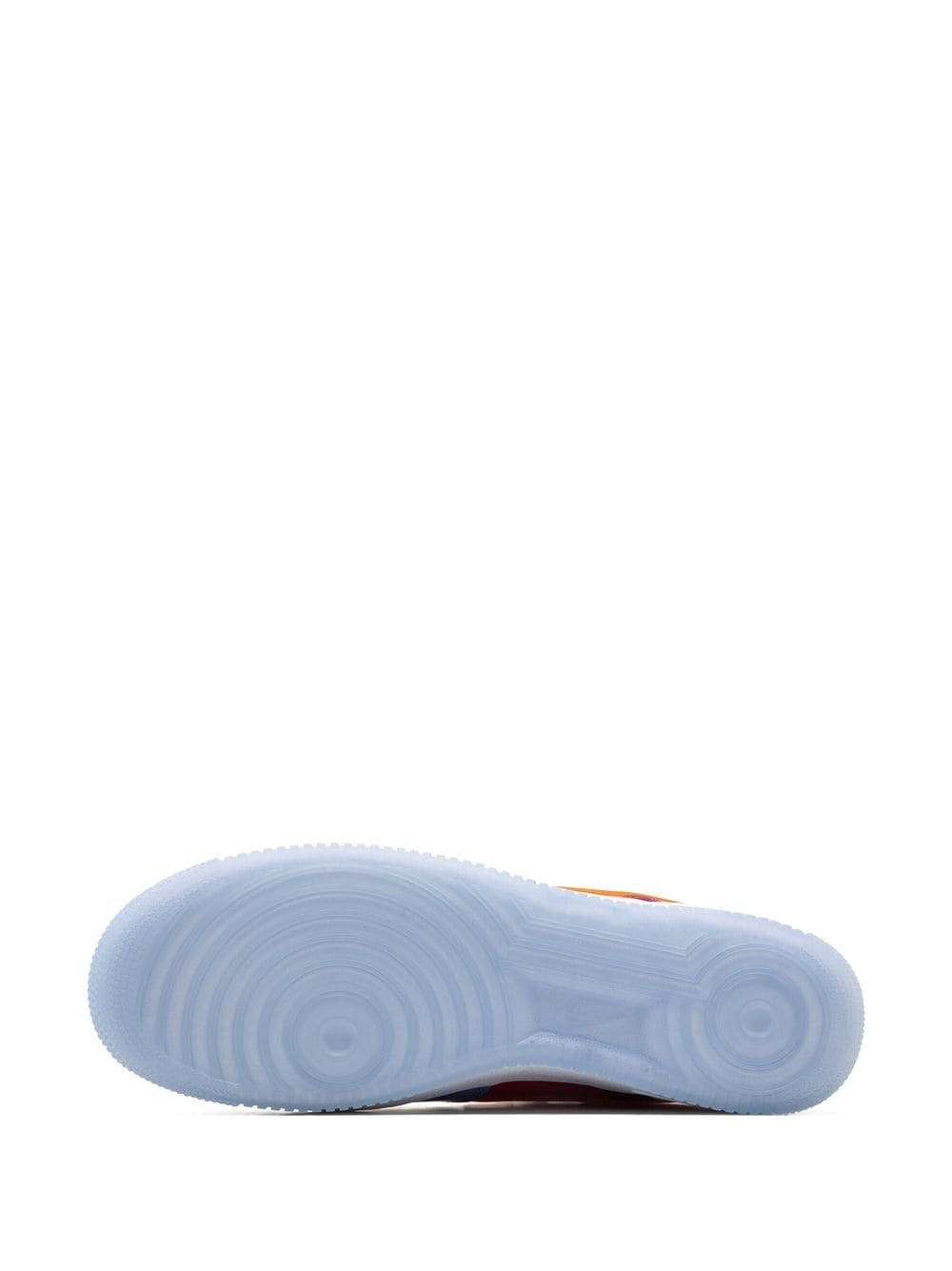 Designed in collaboration with the Californian shop Undefeated, these Nike Air Force 1 Low feature a bold design constructed with multicoloured panels. This pair is made of patent leather and sits atop a white rubber sole and a translucent outsole.