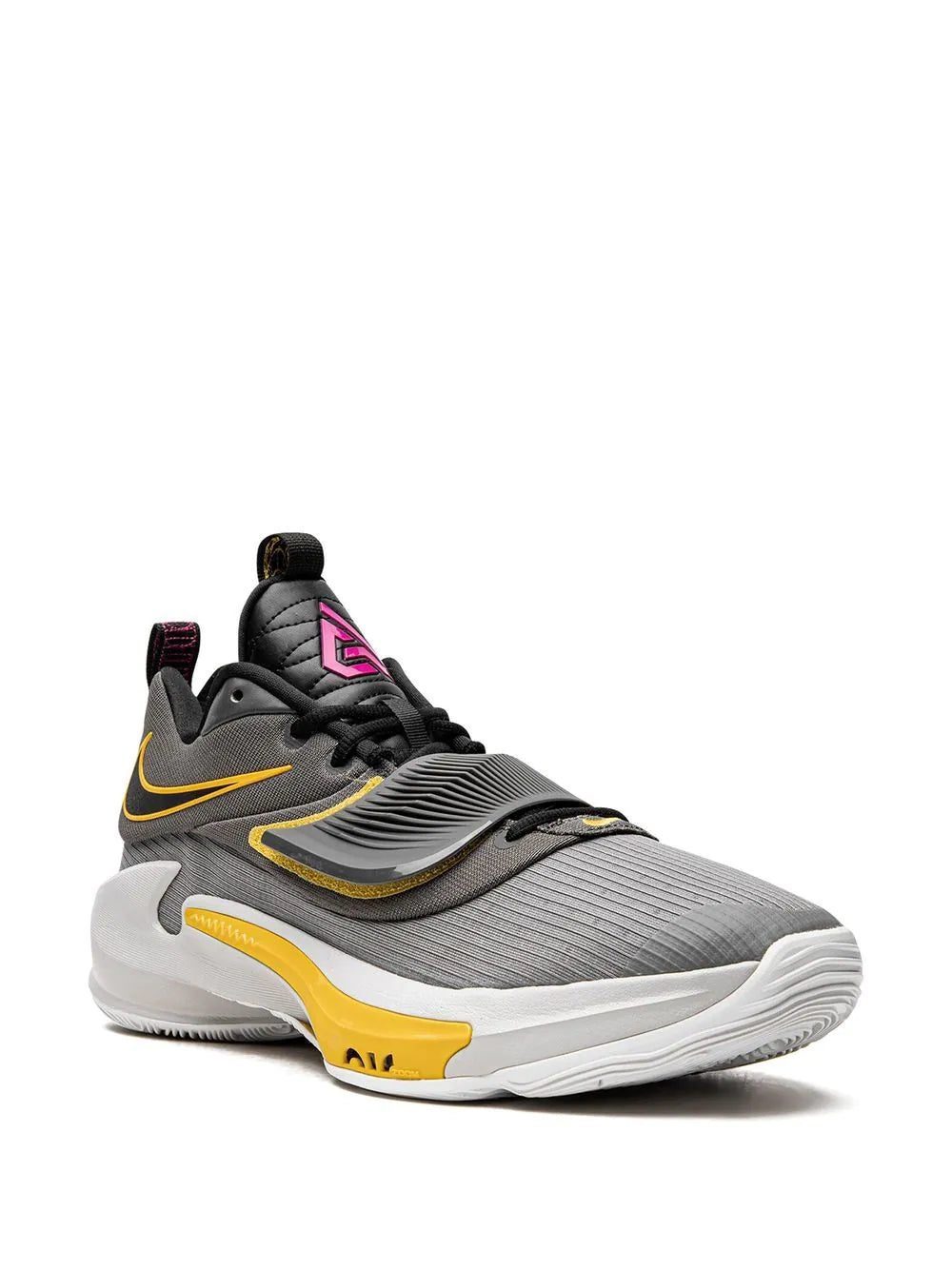 With Giannis Antetokounmpo’s signature, the Nike Zoom Freak 3 was built with energy-returning cushioning and multidirectional traction. Besides the sleek grey and yellow look, the sneaker features a moulded midsole, 2 Zoom Air, and a hook-and-loop strap made from flexible TPU to help reduce internal foot movement.