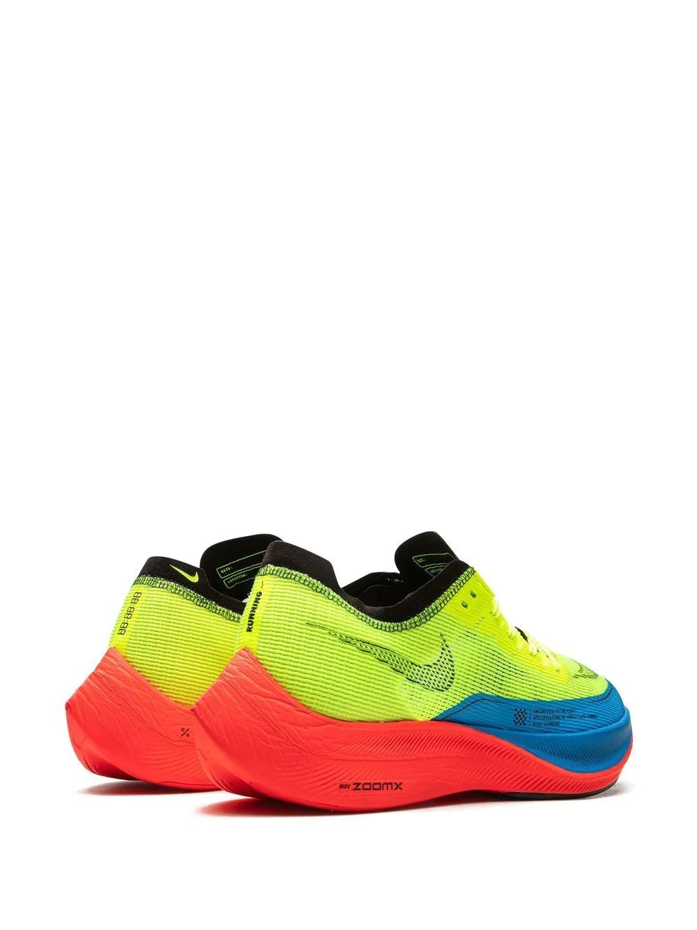 The Nike ZoomX VaporFly NEXT% 2 now arrives in neon green, blue and red shades. This sneaker has a sporty silhouette that indulges in a bold arrangement across its mesh fabric upper while underfoot, a ZoomX-cushioning maintains a red aesthetic and the outsoles feature black tread at the forefoot.