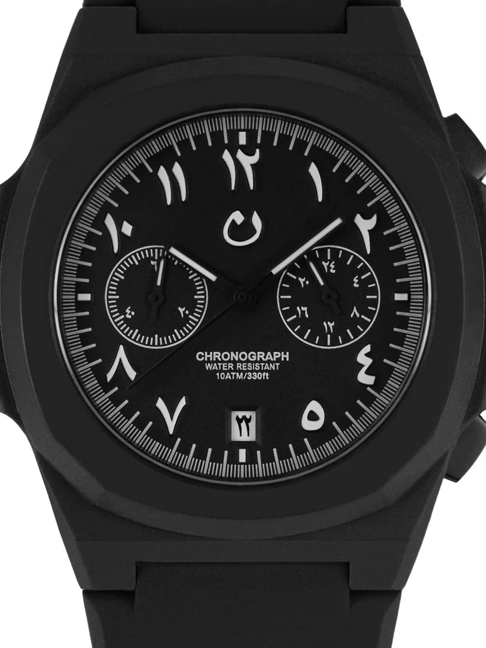 Each collection from Nuun Watches presents designs that are both contemporary and minimal yet merge traditional timekeeping into the models. This Chronograph Arctic 40.5mm is crafted from an all-black polycarbonate case for definition, while the inner working features a quartz Miyolta movement for precision timekeeping.
