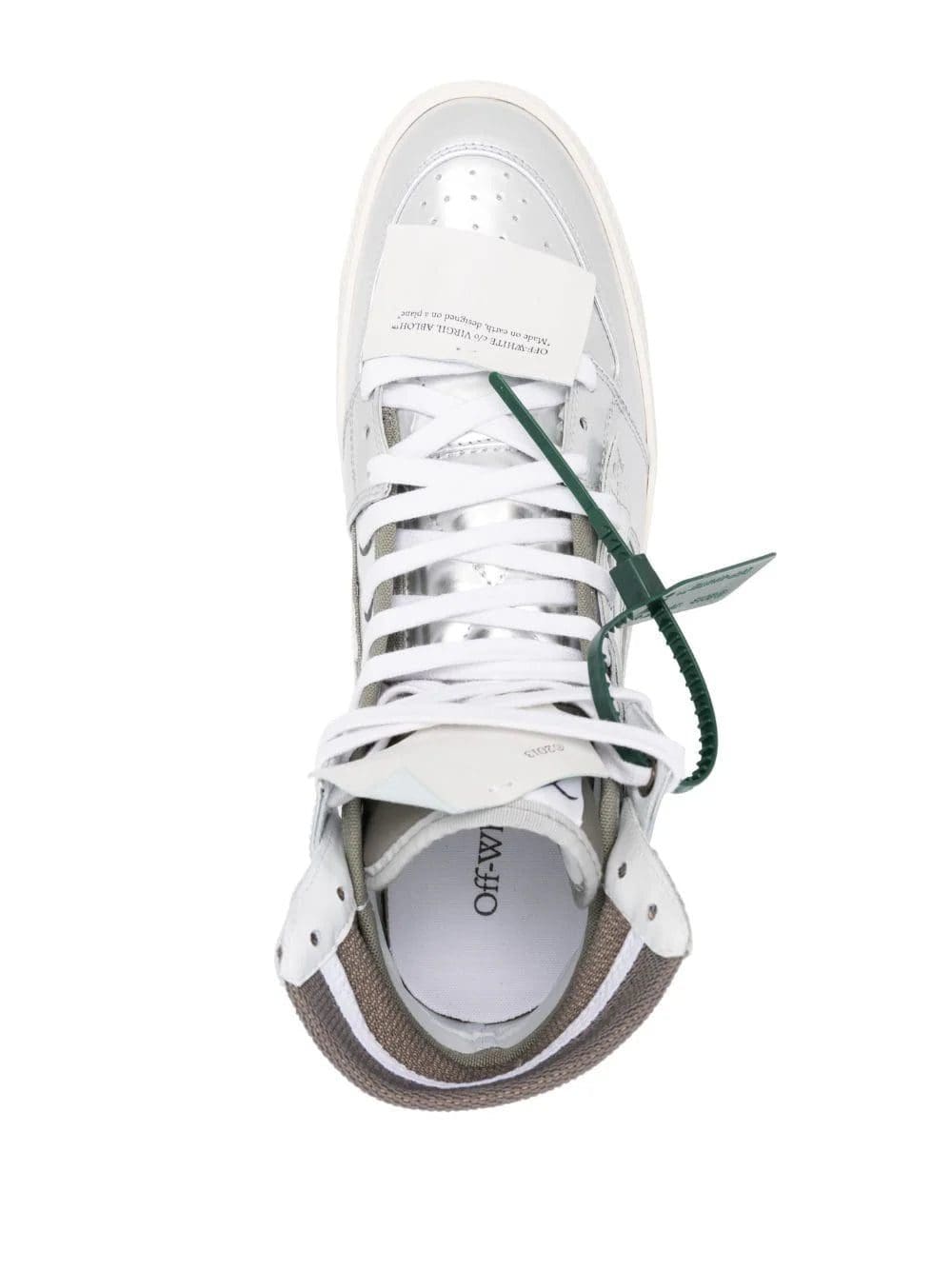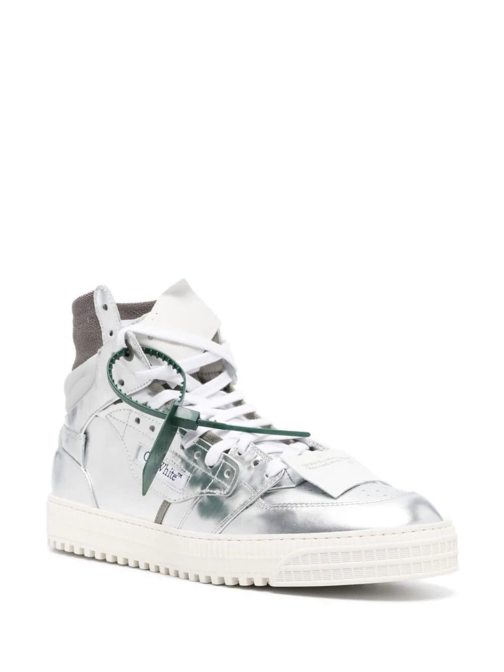 • Featuring signature elements of the Off-White brand, such as a Zip Tie tag and Arrows motif, these Off-Court 3.0 sneakers are instantly recognisable. The placement of these across the shoe and over a metallic colourway fits into the brand's concept of 'embracing the now in a sophisticated manner'.