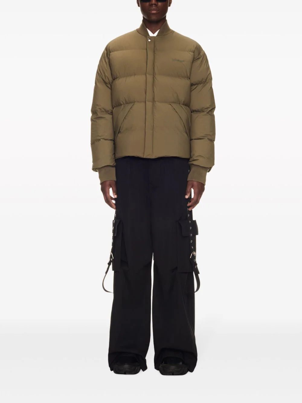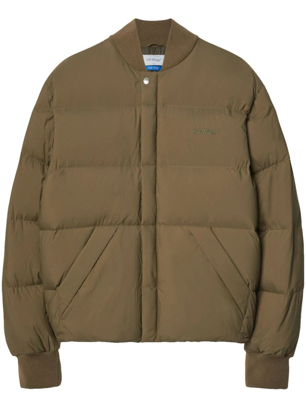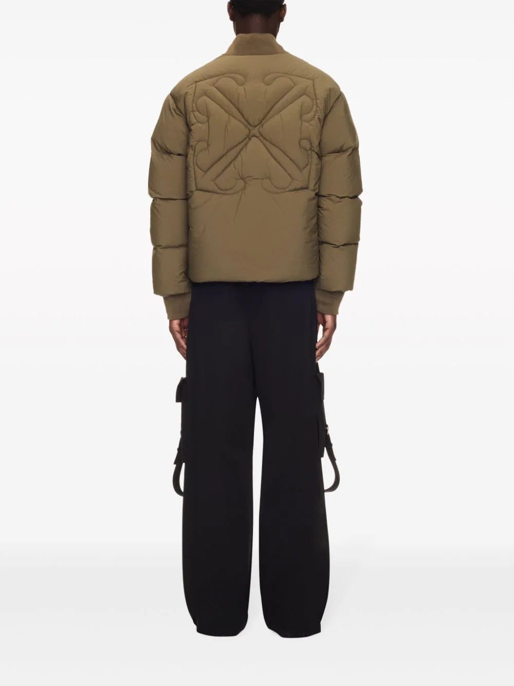 Renowned for its streetwear-inspired aesthetic, Off-White presents this padded jacket design for SS24. Rendered in khaki brown, it's emblazoned with the iconic Arrow motif across the back.