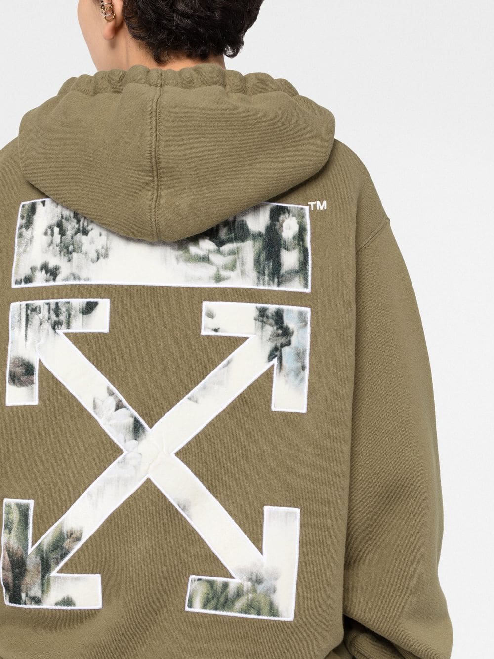 Off-White's green cotton hoodie is detailed with the brand's signature Arrows logo at its rear. An abstract pattern print adds extra interest to this label staple.