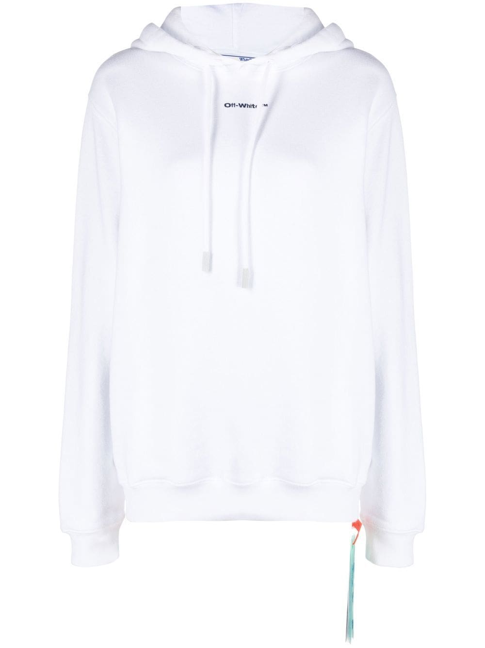 Off-White's hoodie gains a recognisable touch thanks to the signature Arrows motif on the back, which stands out against the tonal white colourway.