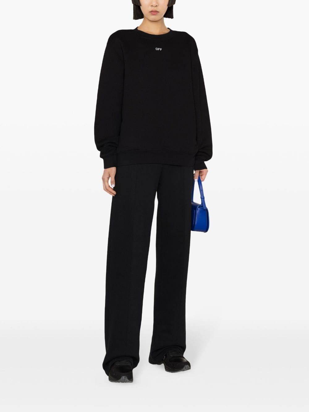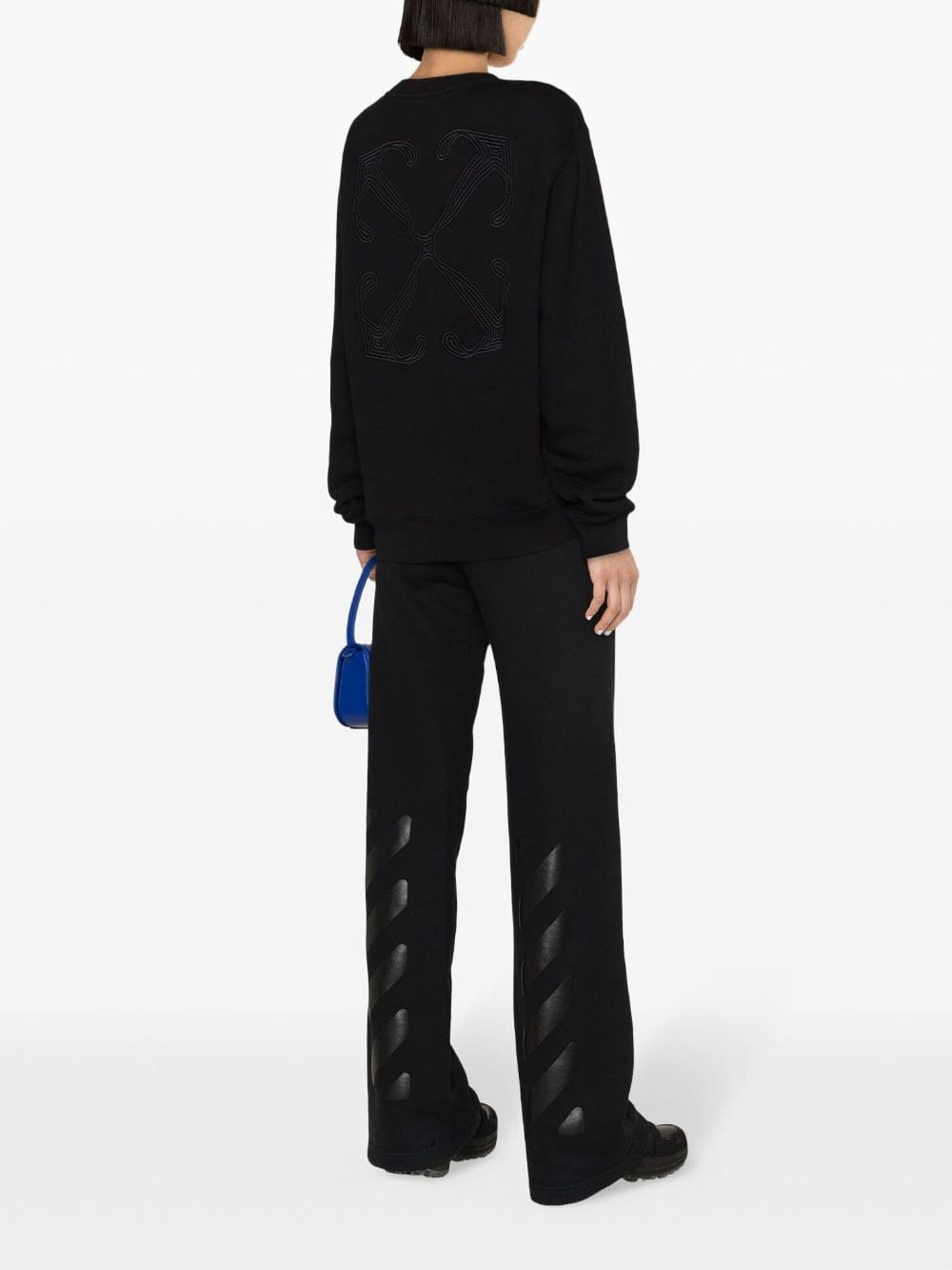 According to industry lore, Off-White's Arrows motif was originally inspired by airport signage. The now-iconic emblem is embroidered at the back of this black sweatshirt and is as much a signifier of its origins as the Stamp logo at the front.