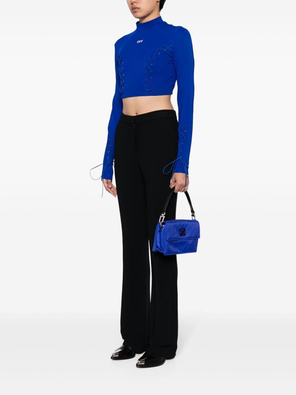 This Off-White tote bag stands out with its electric-blue colourway. The silhouette is detailed with the iconic Arrows motif on the front flap, while a detachable strap allows it to be worn in various ways.