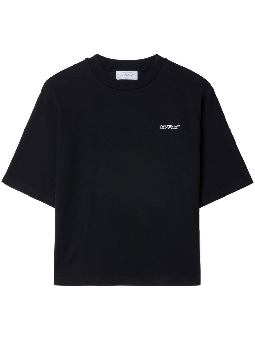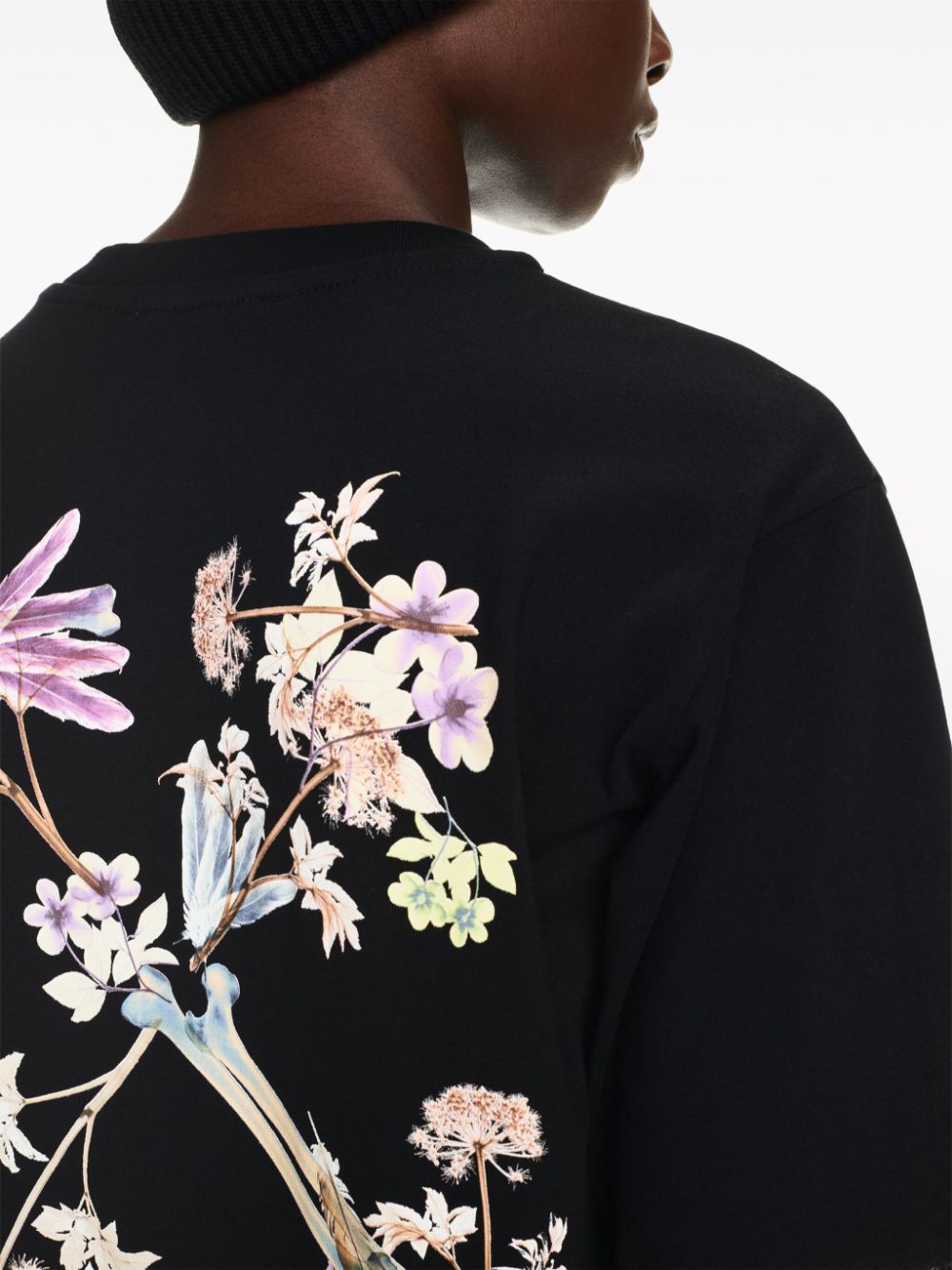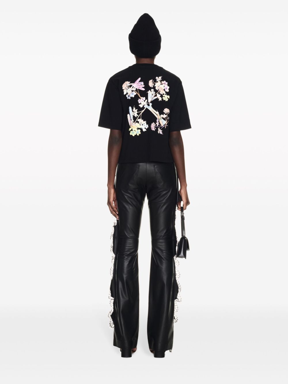 Off-White puts a delicate spin on its signature Arrows motif – it’s reimagined in a floral design that decorates the back of this black cotton T-shirt. The casual piece is complete with contrast logo lettering at the chest.