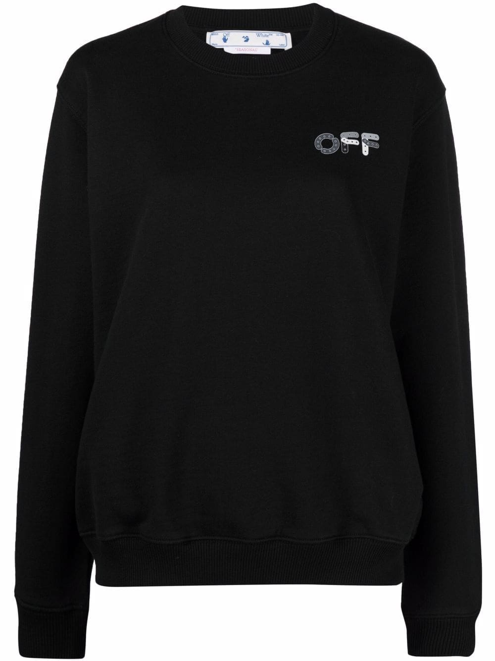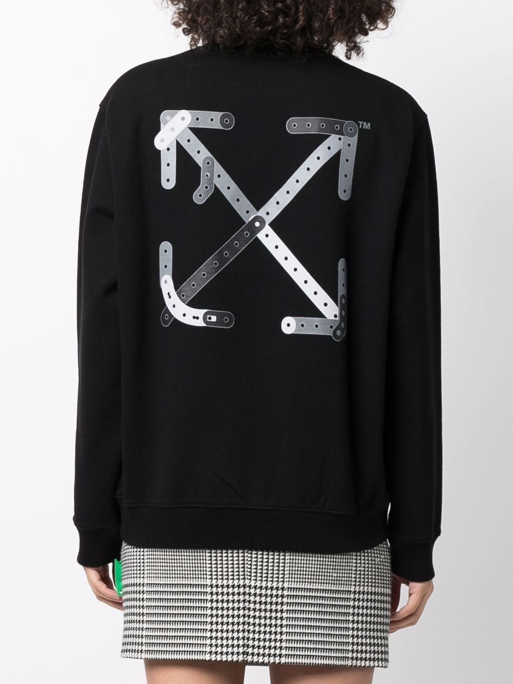 With a plethora of different motifs that have become iconic and instantly recognisable as the label's, Off-White's affinity for branded accents defines much of their aesthetic. Here, the signature Arrows motif appears printed on the rear, in an updated mechanical reinterpretation that is mimicked on the logo lettering at the chest.